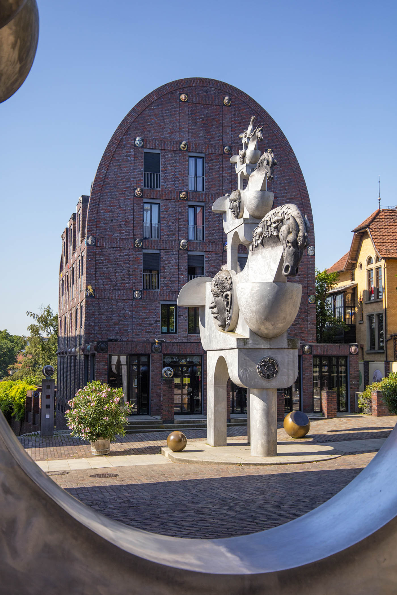 Der Stadtrundgang führt Sie zu den wichtigsten Sehenswürdigkeiten unserer Stadt. Bietigheims in weiten Teilen erhaltene mittelalterliche Altstadt bietet auf engstem Raum beeindruckende Zeichen historischer Baukunst gepaart mit moderner Architektur und Kunst. Auf knappem Stadtraum streben die Gebäude in die Höhe, um sich mit Schnitzereien und Zierrat gegenseitig zu überbieten. Gleichzeitig begegnen dem Besucher heute auch Zeugen unserer Zeit. Zahlreiche Skulpturen und Plastiken, wie das „Ku(h)riosum"– die Kuh auf der Kanne oder der „Turm der grauen Pferde" von Jürgen Goertz bevölkern den Straßenraum und geben damit dem Stadtbild eine besondere Spannung. Am Ende begegnet Ihnen ein Kunstwerk der besonderen Art: die Villa Visconti mit ihren mehr als 300 Kopfdarstellungen.