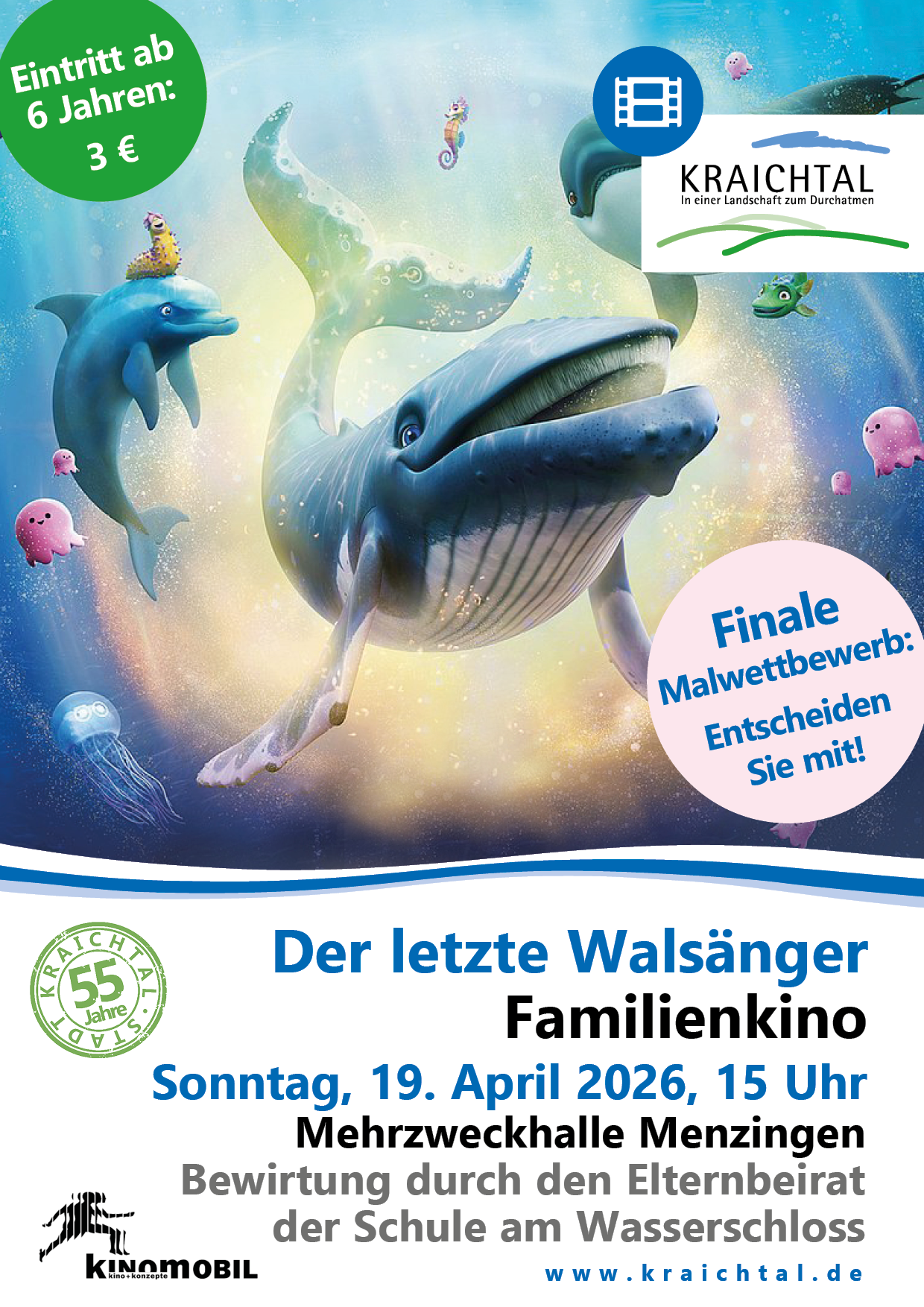 Nach Einladung der Stadt kommt das Kinomobil Baden-Württemberg e. V. wieder zu uns nach Kraichtal. Tickets gibt es direkt vor Ort. Der Eintritt kostet 3 Euro (FSK 6). Für Getränke und Snacks sorgt der Elternverein der Schule am Wasserschloss Menzingen.
