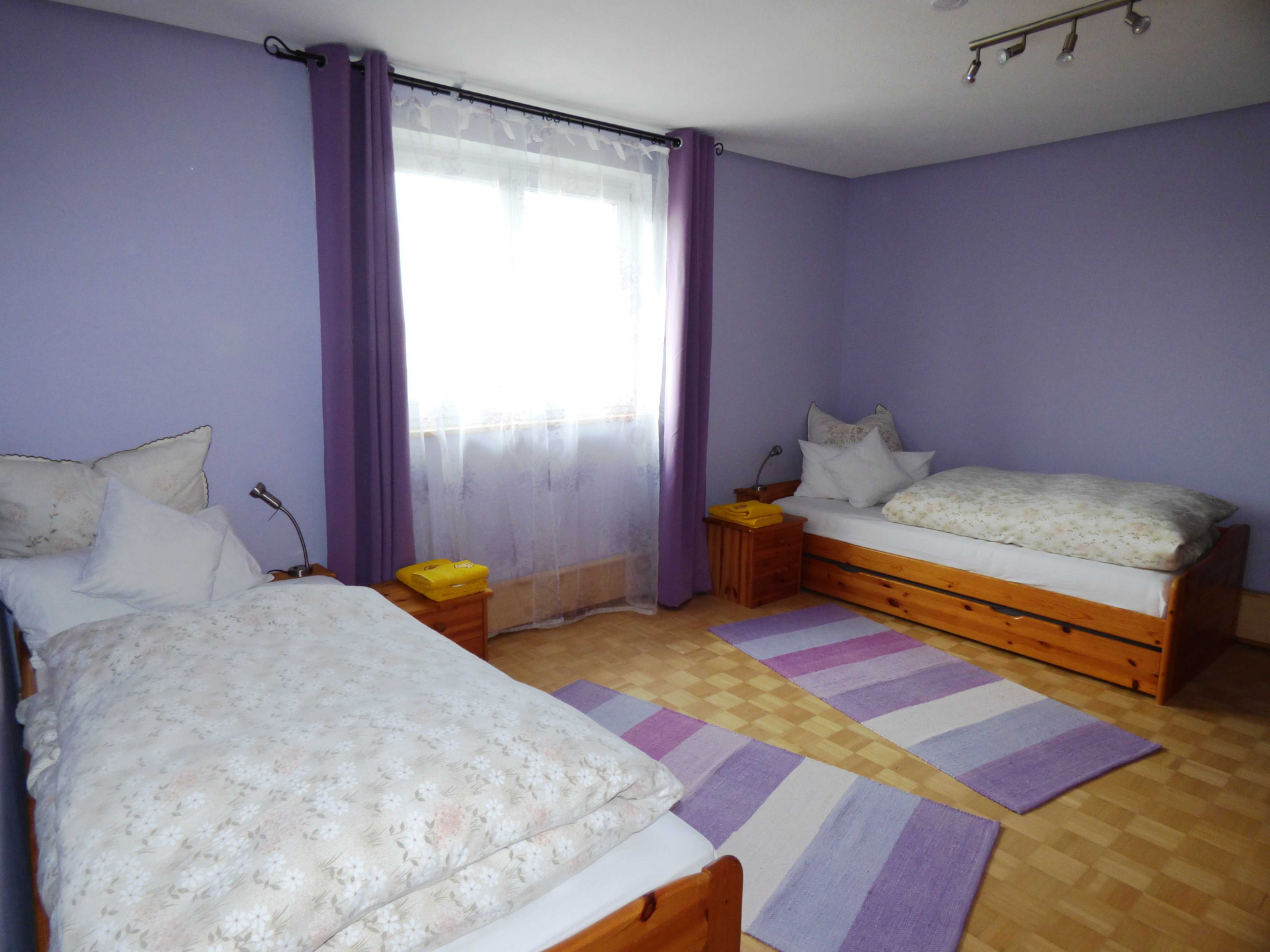 • 2 Schlafzimmer mit 1 Doppelbett und 2 getrennten Betten