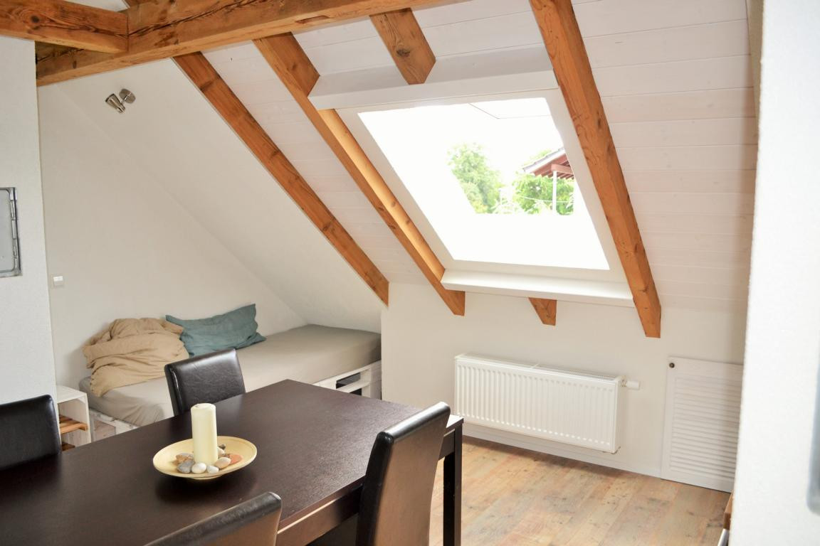 Für ein perfektes Raumklima sorgen modernste Aufdachdämmung, große Dach- und Panoramafenster, sowie ein Lichtkonzept was Ihr Wohlbefinden fördert. Zusätzlich zur Wohnung können Sie auf der gemütlichen Terrasse in unserem Garten verweilen.