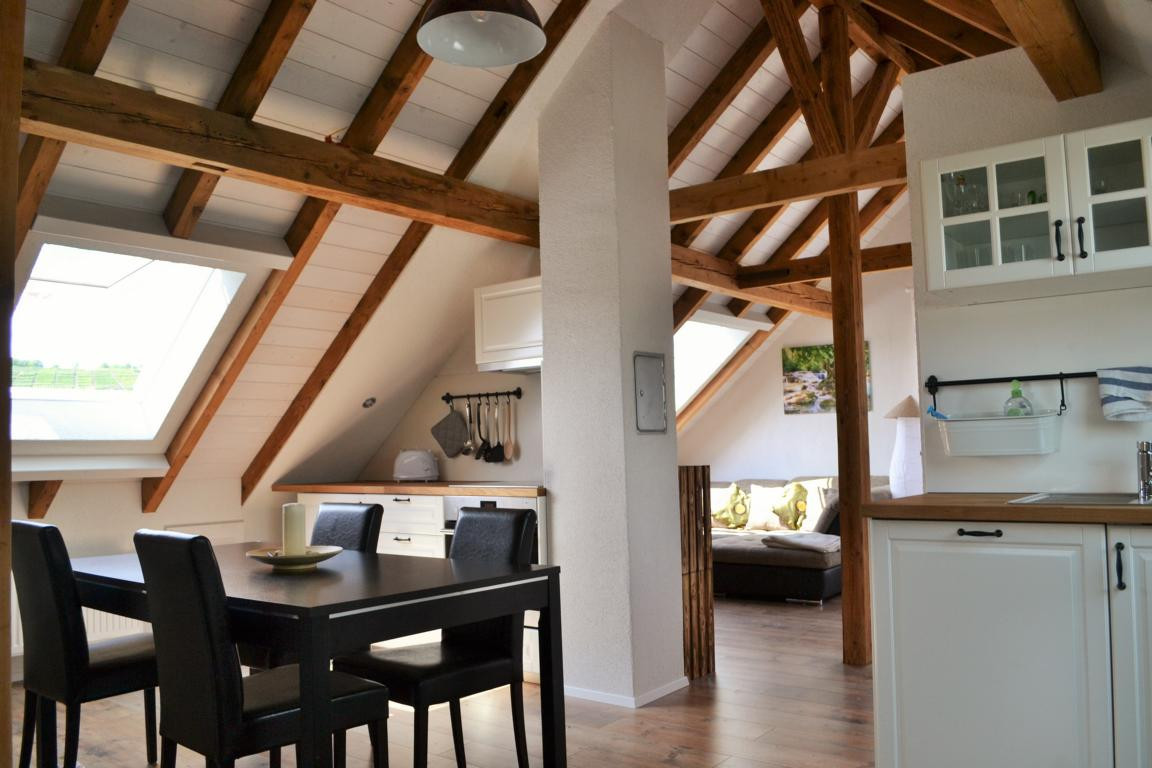 Die Sonne sitzt in der Ferienwohnung Besigheim zum Frühstück und zum Dinner mit am Esstisch. Mit seinen hellen Räumen, viel Holz und hochwertiger Ausstattung, besitzt der Weinblick seinen ganz eigenen Charakter, den Sie lieben werden.