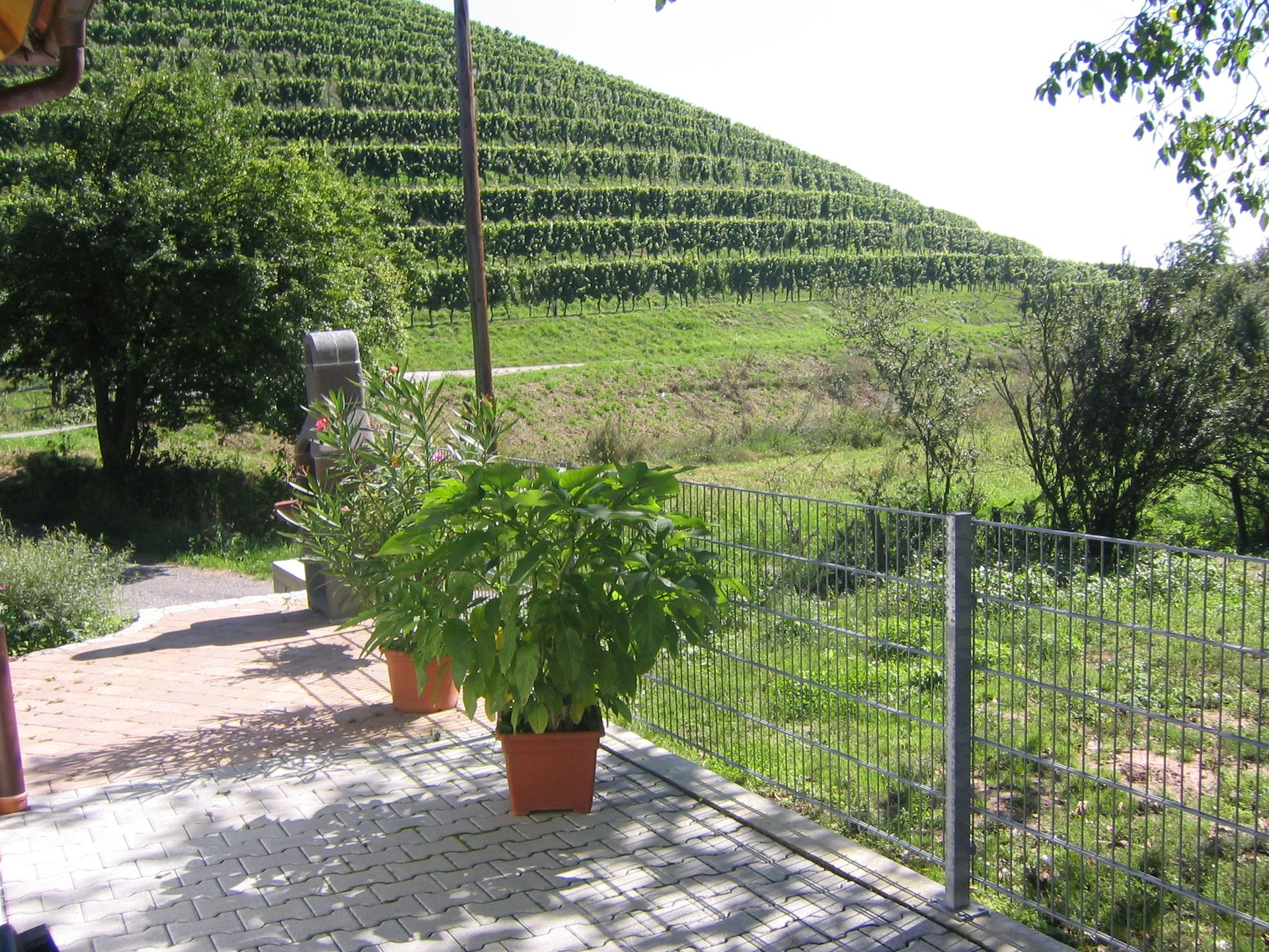 Über der Kelterhalle vom Weingut Echle werden 3 Ferienwohnungen mit Blick auf die Weinberge angeboten.