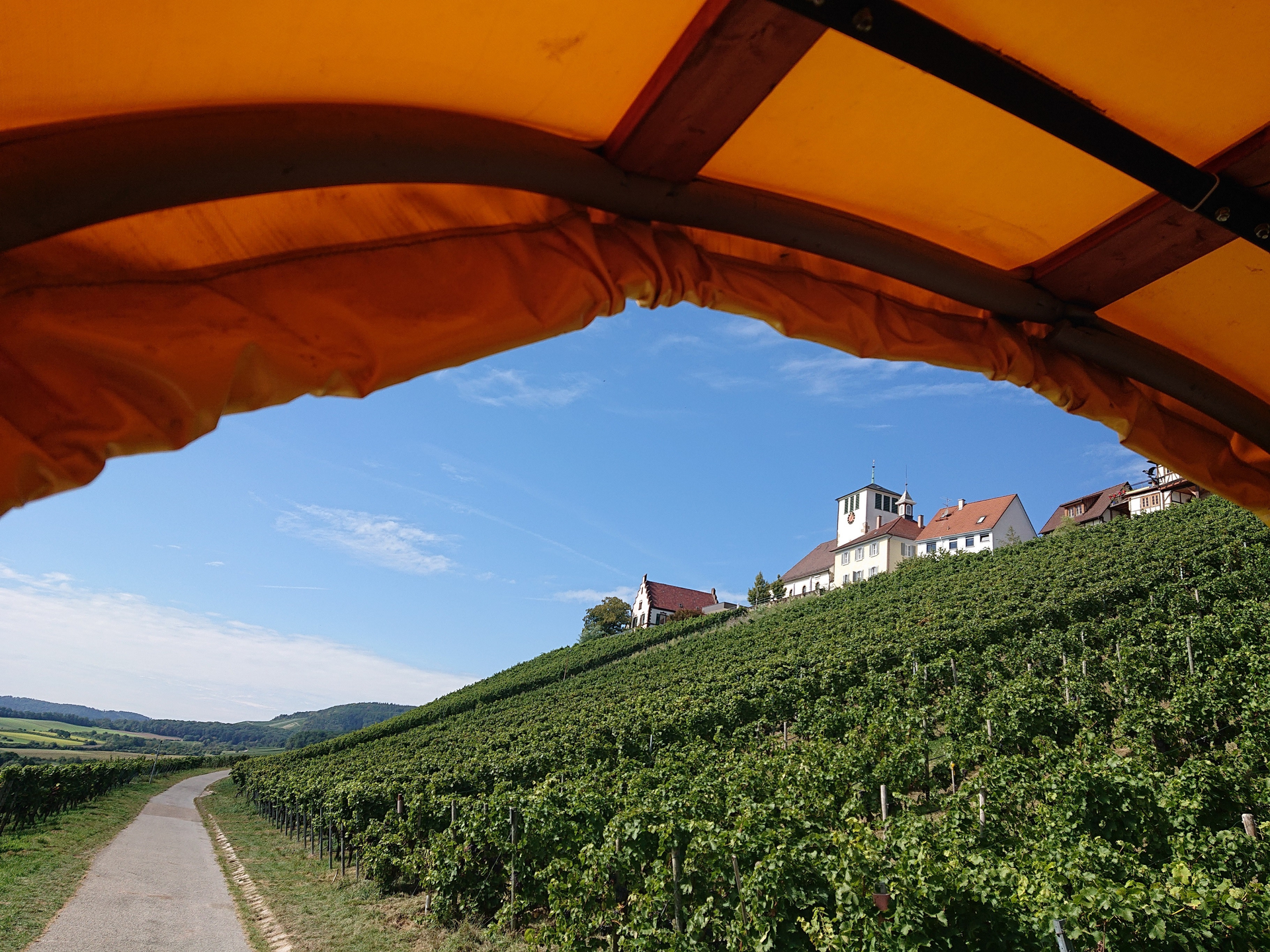 Erleben Sie den Frühling in den Weinbergen bei einer Planwagenfahrt mit Verkostung von Weinen vom WeinGut Weiberle und frisch gebackenem Fingerfood