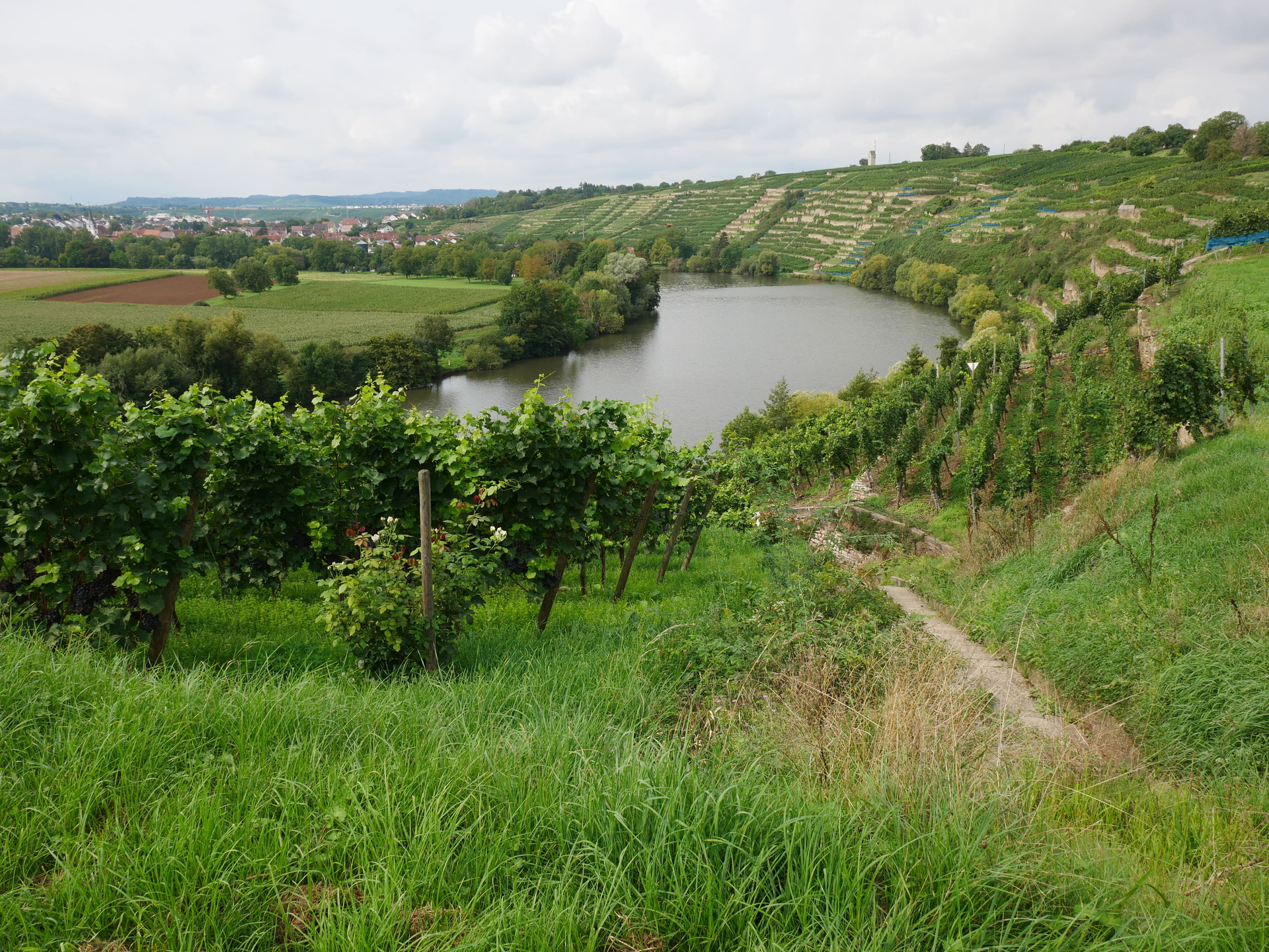 Nach einer rasanten Abfahrt empfiehlt sich der Weinausschank hinter dem Michaelsberg. Oder sprinte hoch zur nächsten Weinsicht mit tollem Blick auf Heuchelberg und die Hügel Richtung Norden. Jetzt darfst Du die Beine ausruhen, es geht rasant abwärts Richtung Botenheim und über Meimsheim nach Lauffen. In Lauffen erkundest Du die ehemalige Neckarschleife und erklimmst sie bis zur Obsthalle Kirchheim. Hier gibt's eine Stärkung für den letzten Abschnitt. Regionale Produkte aus der Region für’s Abendessen? Oder noch besser, füll Deine Biketasche mit frischen Beeren, knackigen Äpfeln und einem kühlen Kaltgetränk und roll die paar Hundert Meter weiter zur Kirchheimer Weinterasse für eine kleine Hügel-Pause! Schnapp Dir das perfekte Foto mit dem Neckar im Hintergrund. Sonntags gibt's hier sogar Weinausschank! Entlang des Neckars Richtung Süden geht's zum Highlight: hoch über Besigheim für einen tollen Blick über die mittelalterliche Architektur. Zurück zum Ausgangspunkt? Klar, aber schlendere doch noch ein wenig durch die hübsche Stadt. Wer weiß, vielleicht entdeckst Du noch ein süßes Café oder einen charmanten Weinkeller. ;)