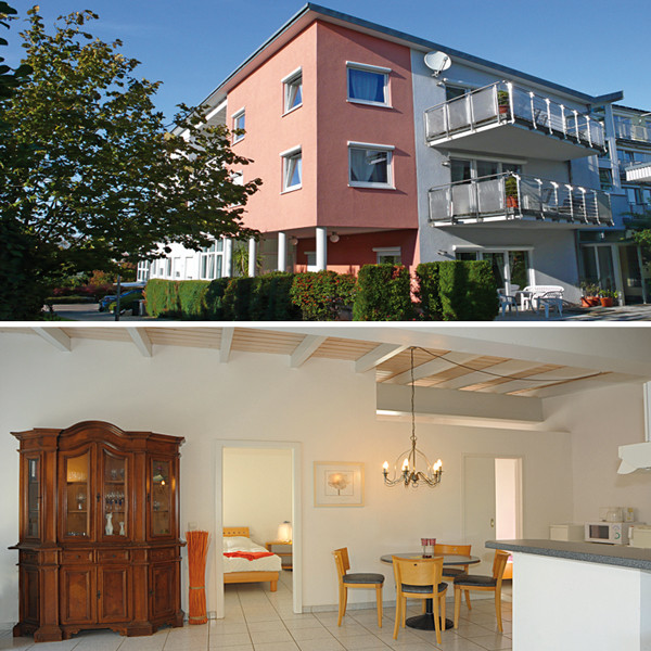 Moderne Einrichtung, gemütliche Atmosphäre, pflegeleicht, komfortabel. Alle Wohnungen zur Südseite gerichtet, hell und freundlich. Parkplätze vor dem Haus, Restaurant nebenan, Kurpark gegenüber.