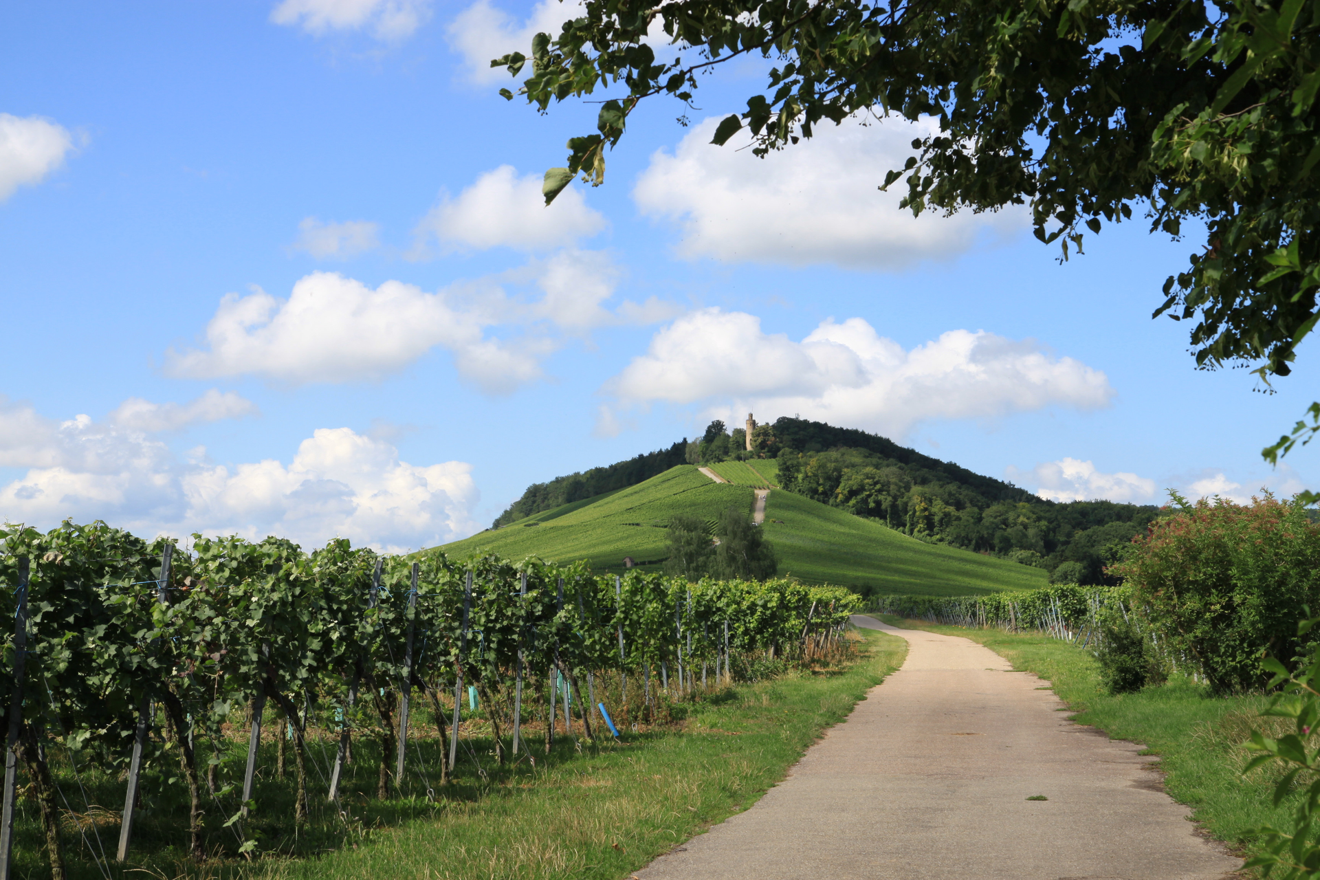 Blick auf den Weg zur Heuchelberger Warte mit großem Hügel im Hintergrund. | © Heuchelberger Warte