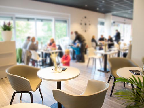 Das moderne Café ist stilvoll und gemütlich eingerichtet mit einer Spielecke für die kleinen Besucher. Außerhalb der Öffnungszeiten können hier auch Schulungen und Seminare abgehalten werden.