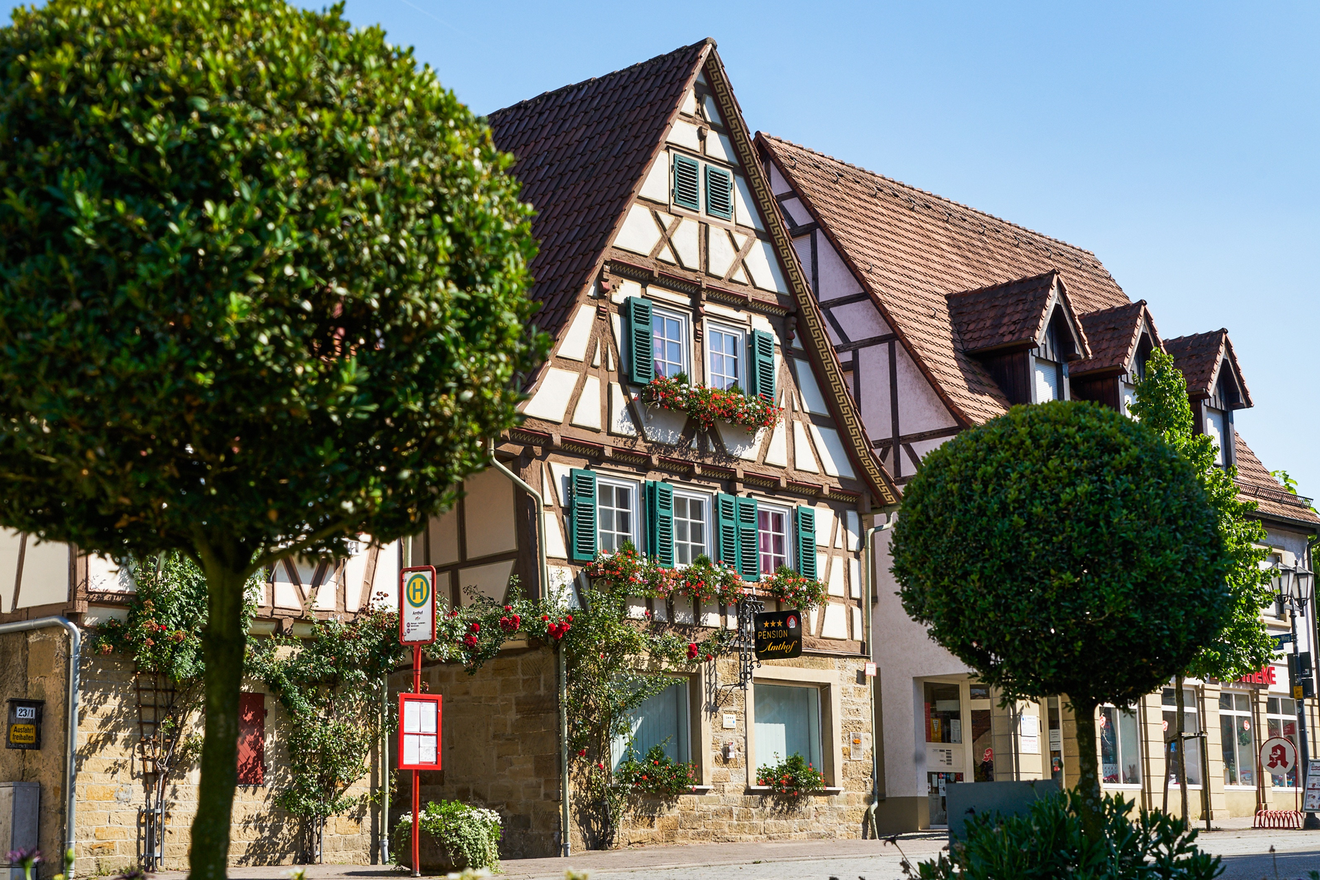 Übernachten Sie in einem von drei stilechten Themenzimmer. Genießen Sie Ihren Aufenthalt im schönen Weinort Oberderdingen – die Pension liegt gleich gegenüber dem Amthof.