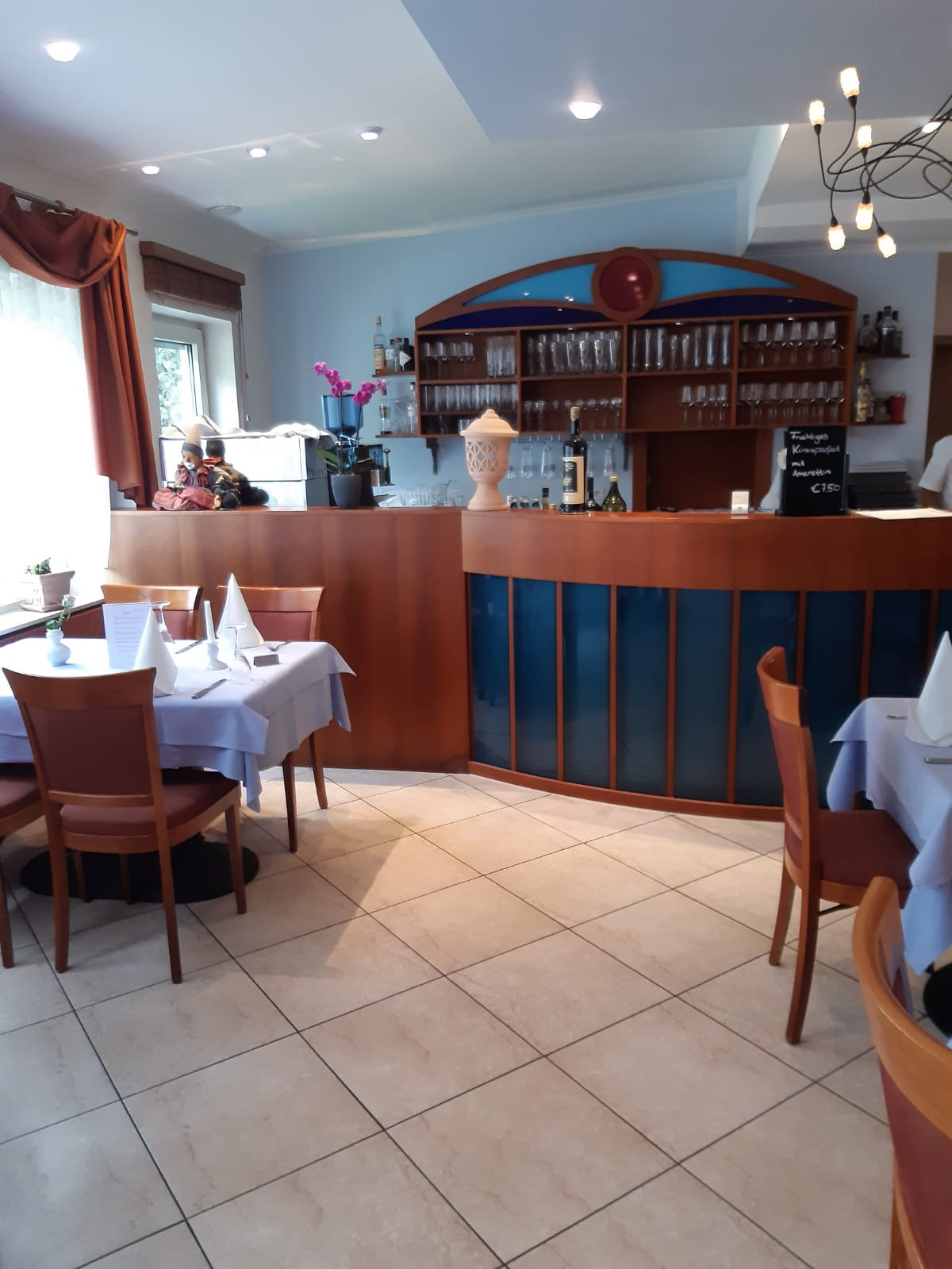 Vielzahl an italienischen und sardischen Gerichten. Nudelgerichte, Fleischgerichte, Fisch und natürlich Pizza. Kein Wunsch bleibt unerfüllt. Täglich gibt es eine frische Auswahl an Edelfischen. Auch an warmen Frühlingstagen kann man sein Gericht im Freien bei Sonnenschein genießen.