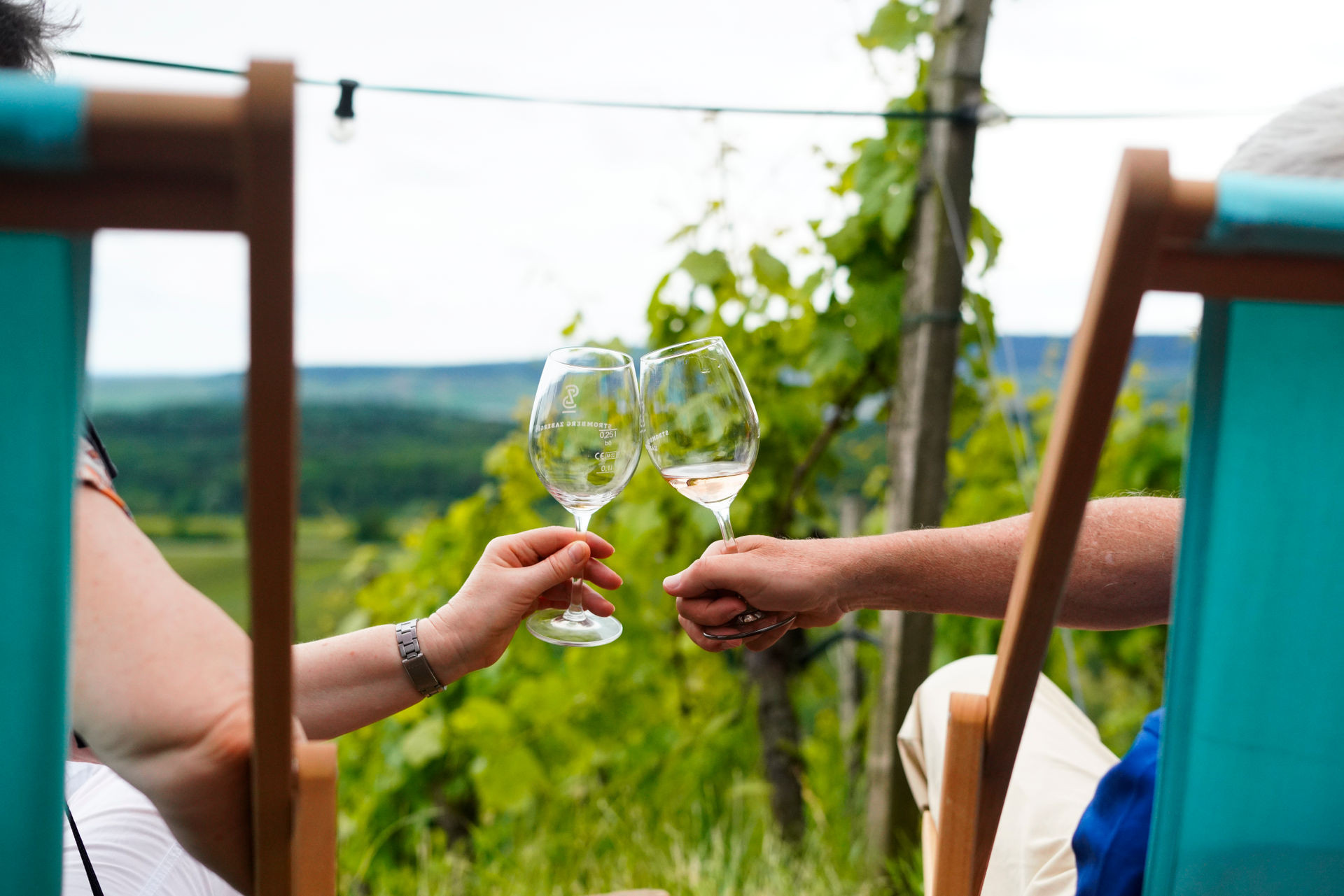 Abendstimmung im Sonnenuntergang am Weinausschank. Eine Gruppe Frauen, die mit Weingläsern anstoßen. | © Neckar-Zaber-Tourismus e.V.