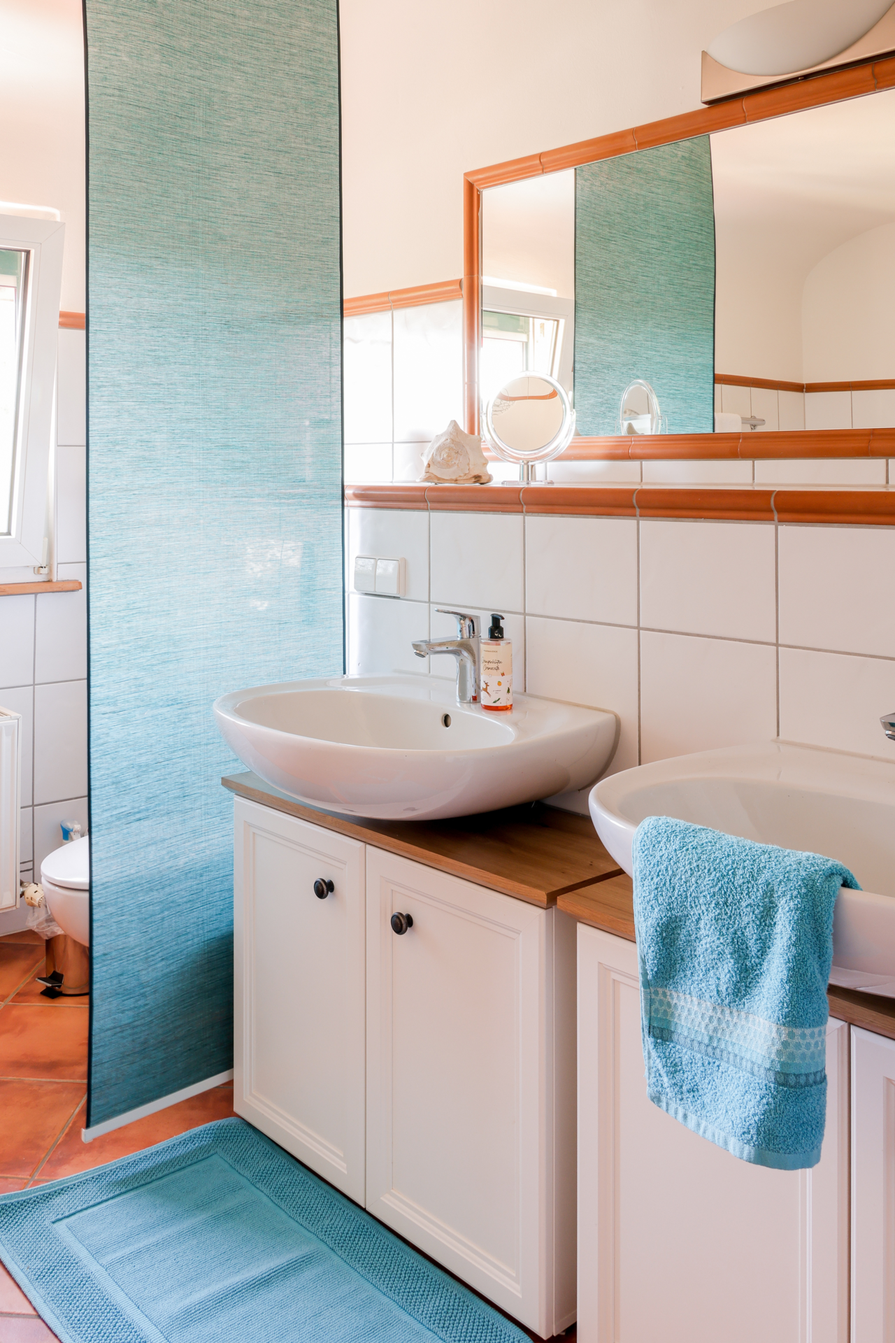 Die helle 120qm große Ferienwohnung befindet sich im 2.OG mit Blick in die Natur.
