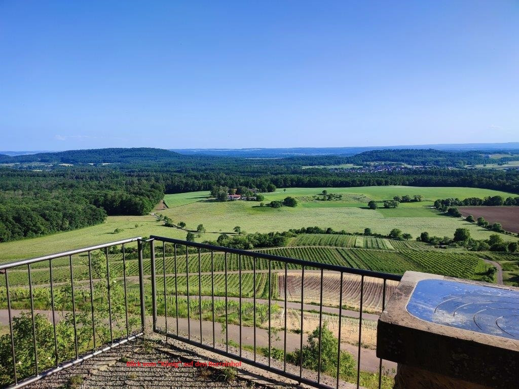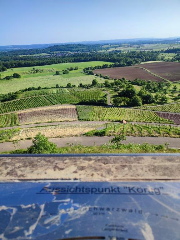 Geologische Aufschlüsse entlang des Weges geben Einblicke in die Entstehung des Stromberges. Man folgt dem zum Wald hochziehenden Sträßchen und kommt oben am Waldrand entlang auf einem Pfad zur Aussichtsplattform mit Rastpavillon. Hier wird dem "König" Referenz erwiesen.