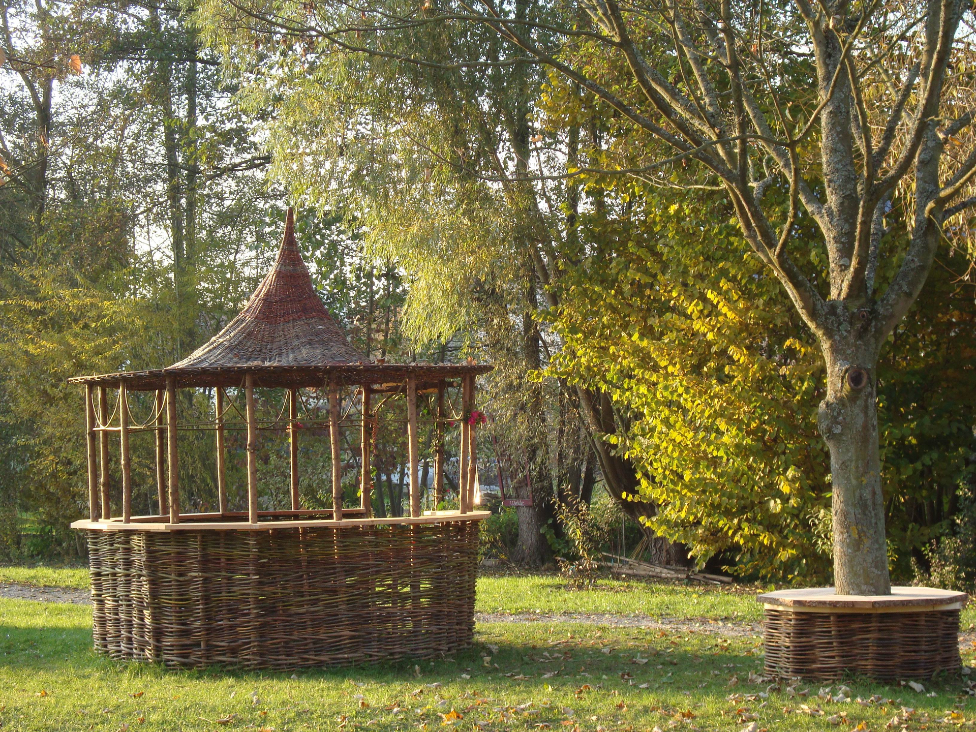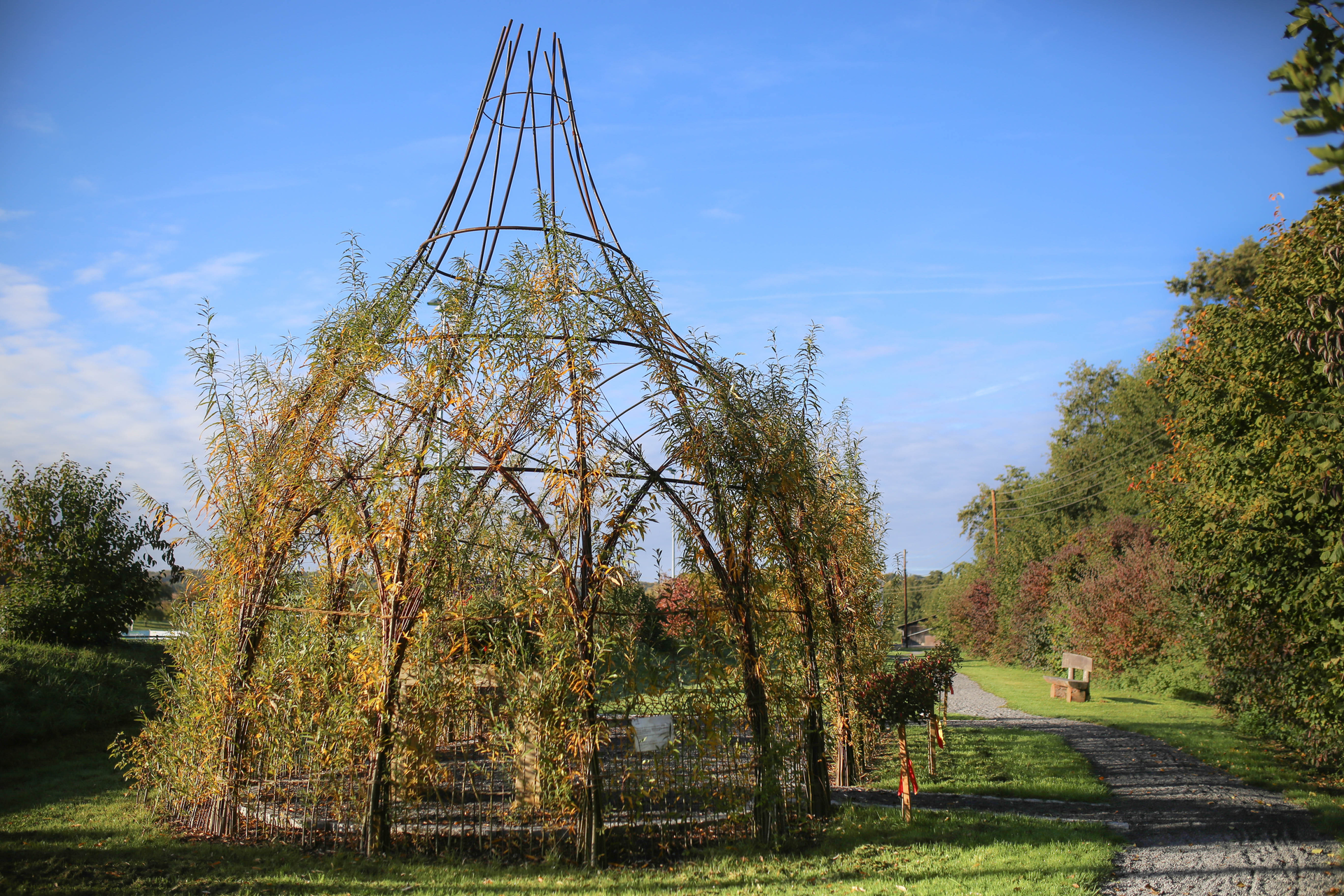 Am Ende des Pfades befindet sich die Weidenkirche. Dort finden bei schönem Wetter Gottesdienste, Hochzeiten oder Taufen statt.