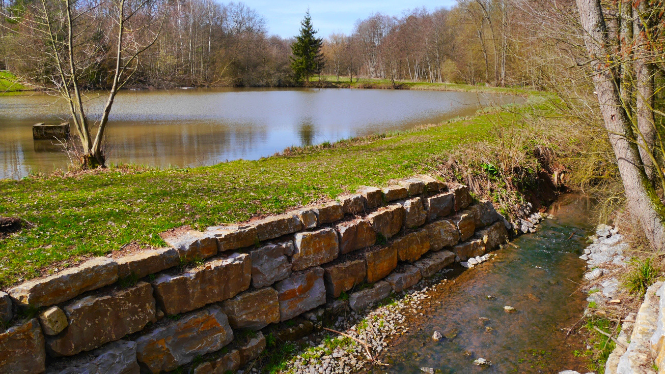 Wieder zurück auf dem Wanderweg lässt man die Fischweiher an der Metter links liegen und nimmt danach den Weg nach links in den Wald. Der Erdweg führt zuerst sanft, dann kurz etwas steiler nach rechts bergan. An der Hangkante angekommen, sieht man schon die Wirtschaftsgebäude des Burrainhofes, der in einer Besenwirtschaft eigenen Wein ausschenkt. Nach der Stärkung in einer der ältesten Besenwirtschaften des Landes tritt der Wanderer den Heimweg an. Auf der Teerstraße hält man sich zuerst in nordöstlicher Richtung und biegt bei dem querenden Teersträßchen nach links ab. Ihm folgt man nun bis zum Ausgangspunkt, während rechts der Ausblick auf die Weinberge des Diefenbacher Königs genossen werden kann.