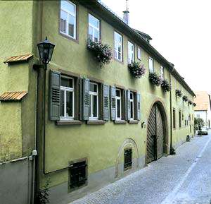 Ehemals Armenspital, mit Wappen des Philipp Zehnder und der Magdalena Virnhaber, aus dem Jahre 1572.