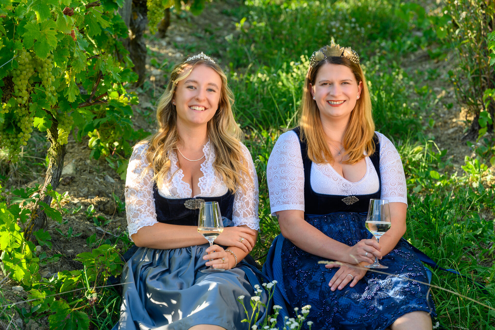 Weinkönigin Mareike Fries und Weinprinzessin Clara Murphy im Weinberg | © Thomas Weller     t.weller@t-online.de