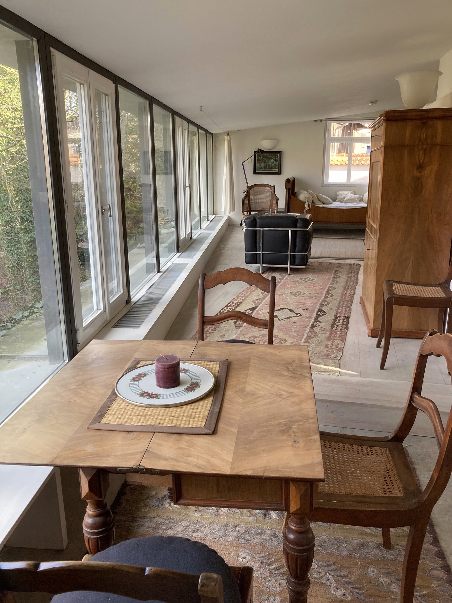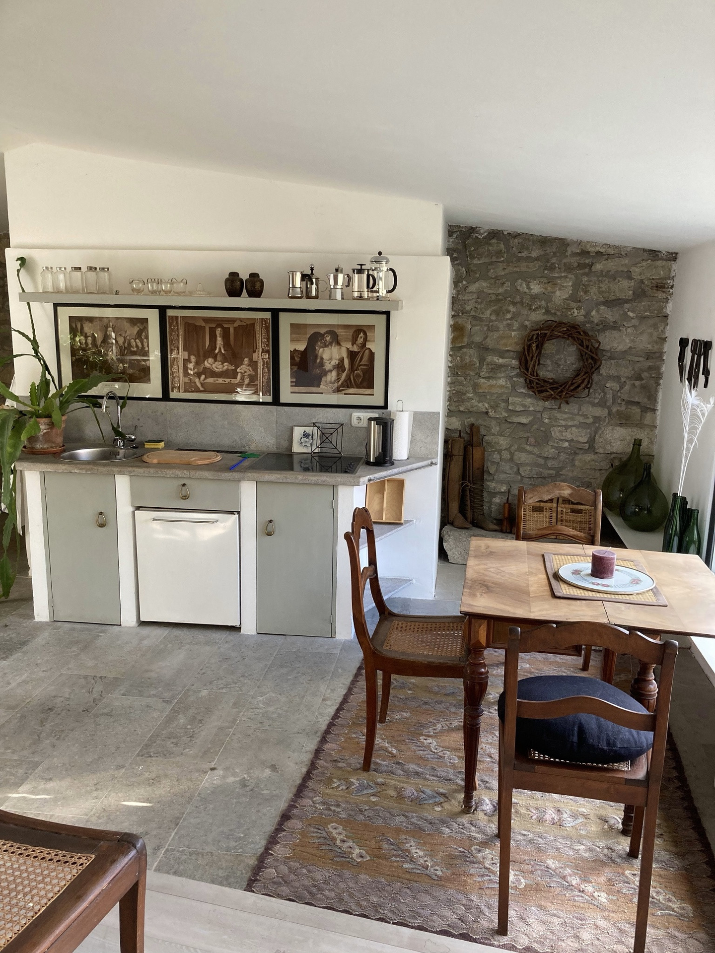 Im Hof befindet sich unter einem alten Nussbaum ein Außensitzplatz. Eine Parkmöglichkeit gibt es am Spitalmuseum, das circa 3 Minuten Fußweg entfernt ist. Gastronomie, eine Apotheke, ein Bäcker sowie ein Supermarkt bieten alles was man benötigt.