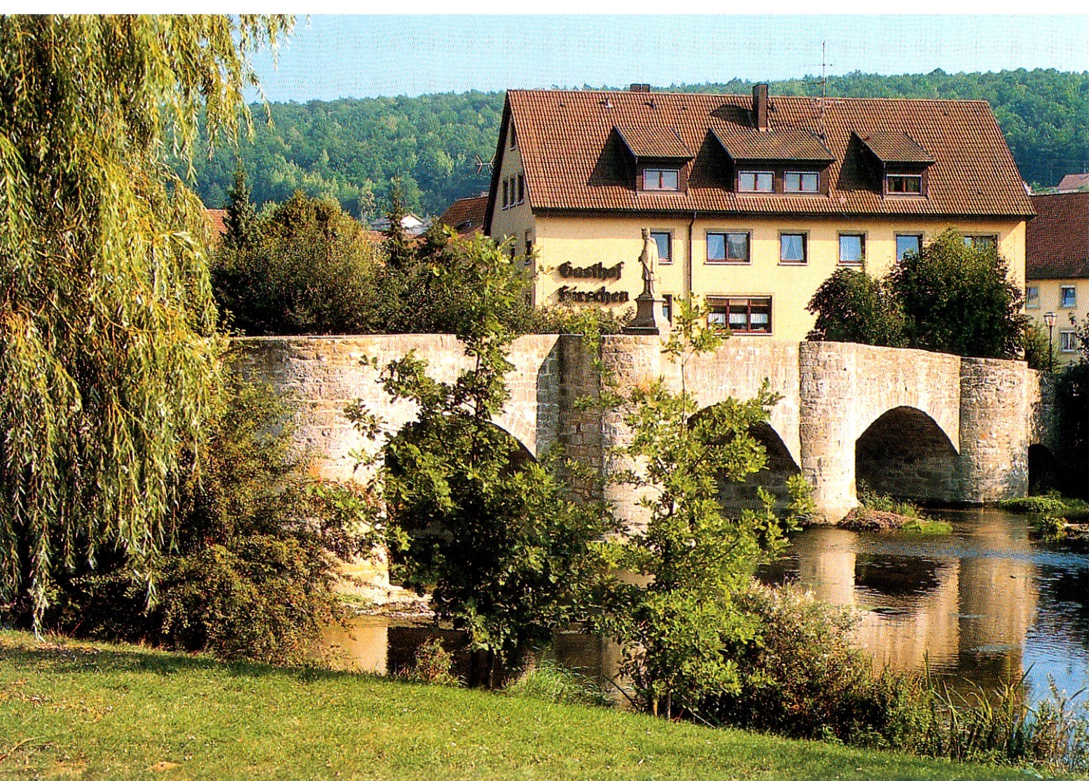 Der Landgasthof zum Hirschen ist familiengeführt seit 1886. Idyllisch gelegen am Fluss Tauber mit Blick auf die Weinberge und Balthasar-Neumann Steinbrücke. Ausgangspunkt für Wanderungen und Radtouren durch das Liebliche Taubertal und fränkische Weinland. Was zum Erholen wunderschön ist, kann fürs Arbeiten nur nützlich sein