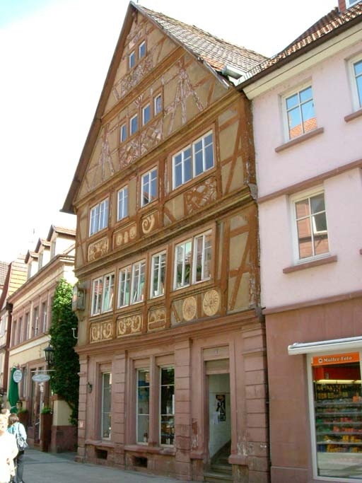 Renaissancefachwerk mit Melusinendarstellungen, erbaut 1628 von der Familie Liebler.