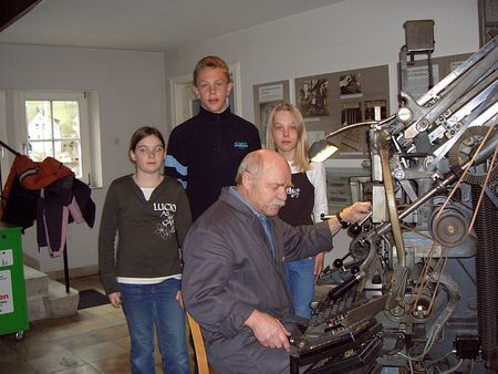 Dies war die Zeilensetz-, Gieß- und Ablegemaschine von Schriftzeichen, die durch eine schreibmaschinenähnliche Tastatur bedient wird.