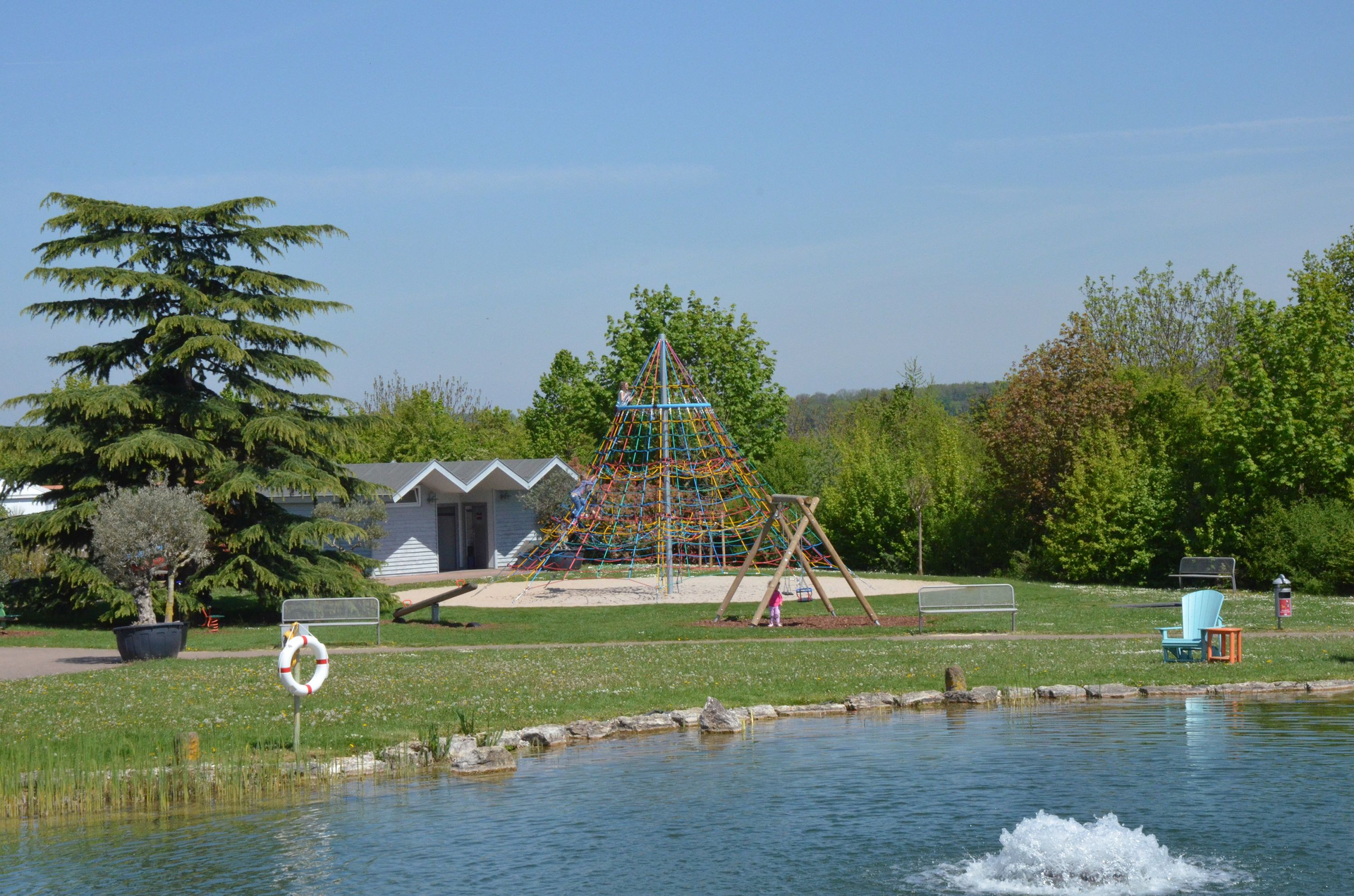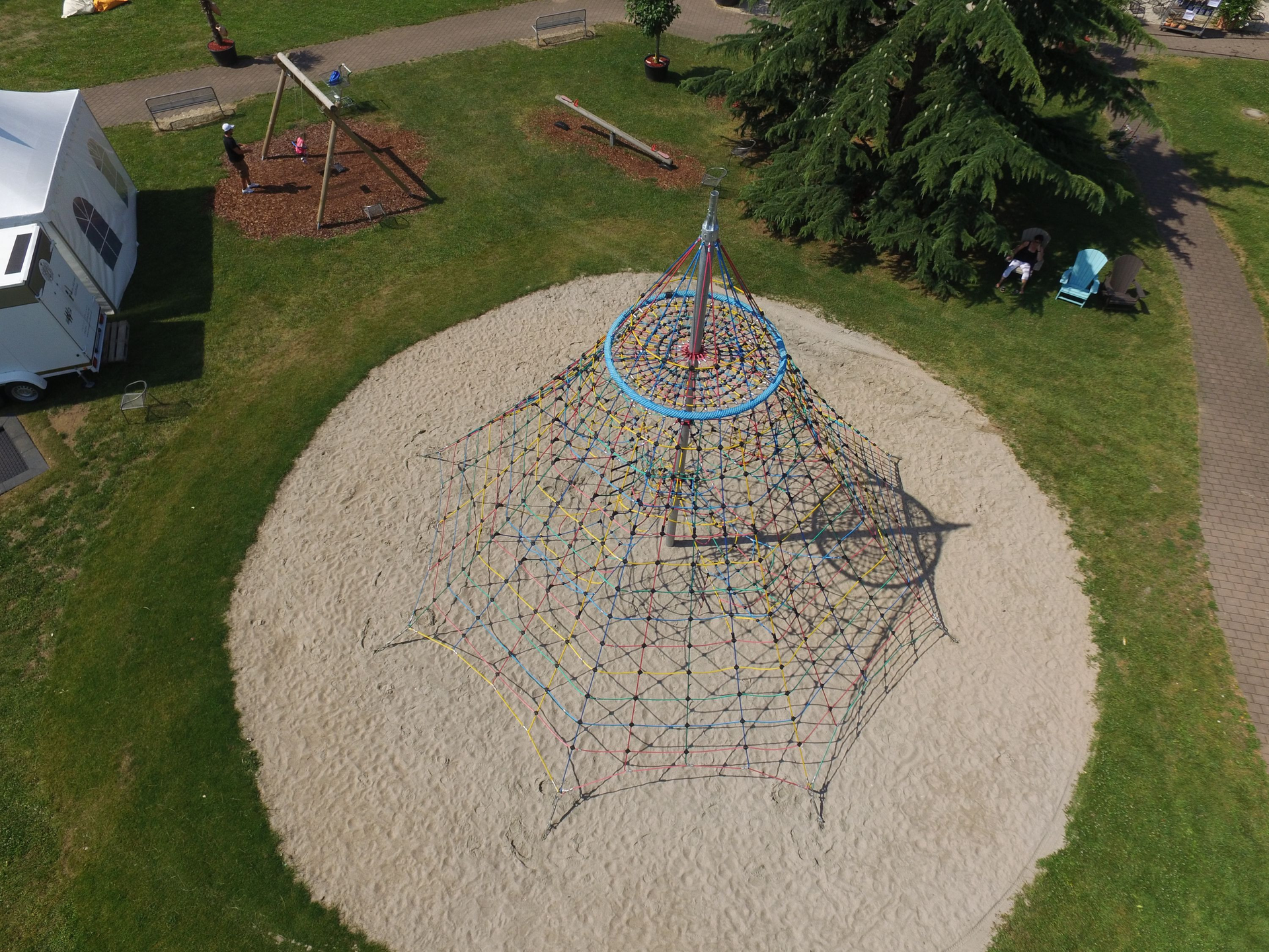 - eine sieben Meter hohe Kletterpyramide für kleine Gipfelstürmer