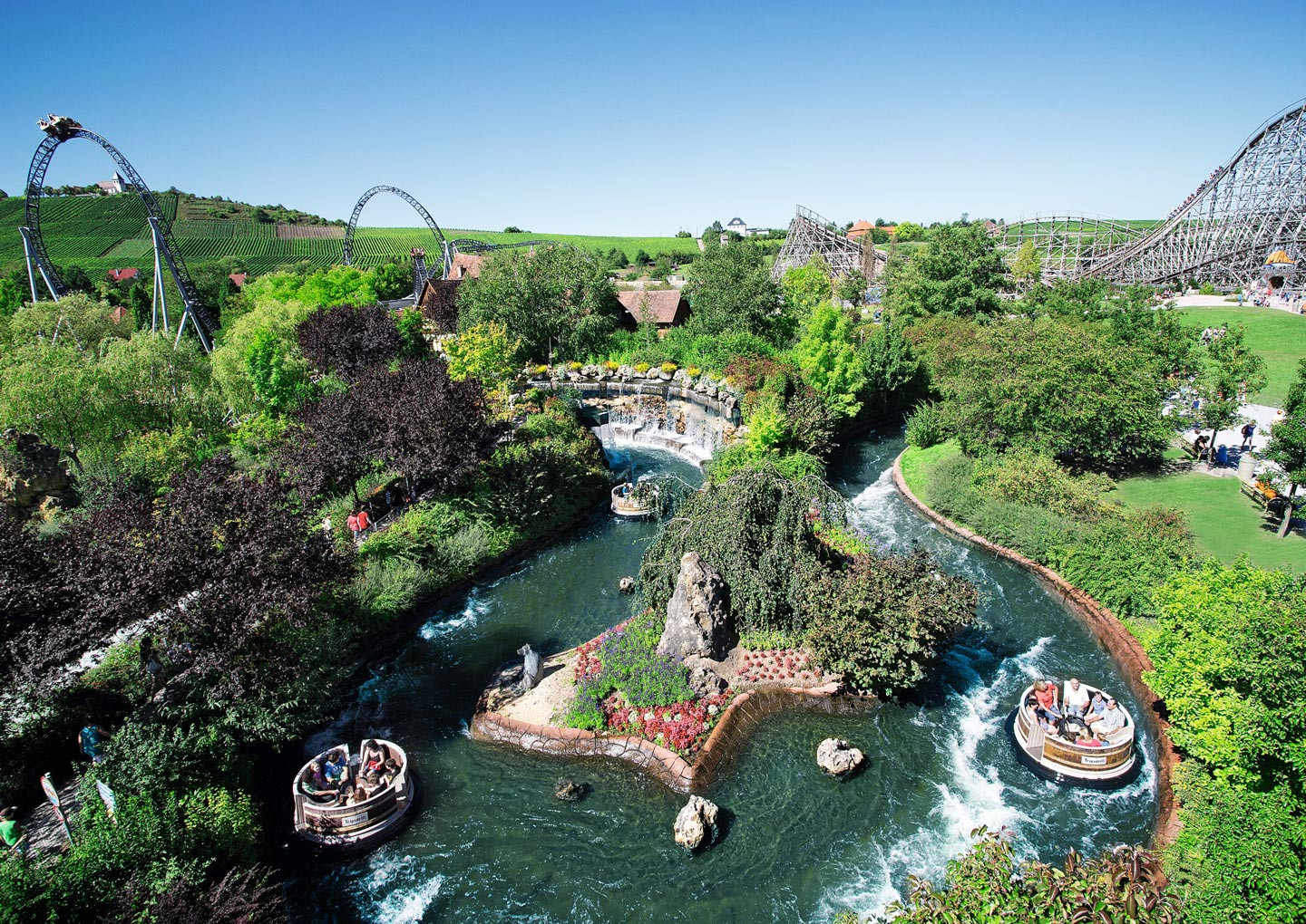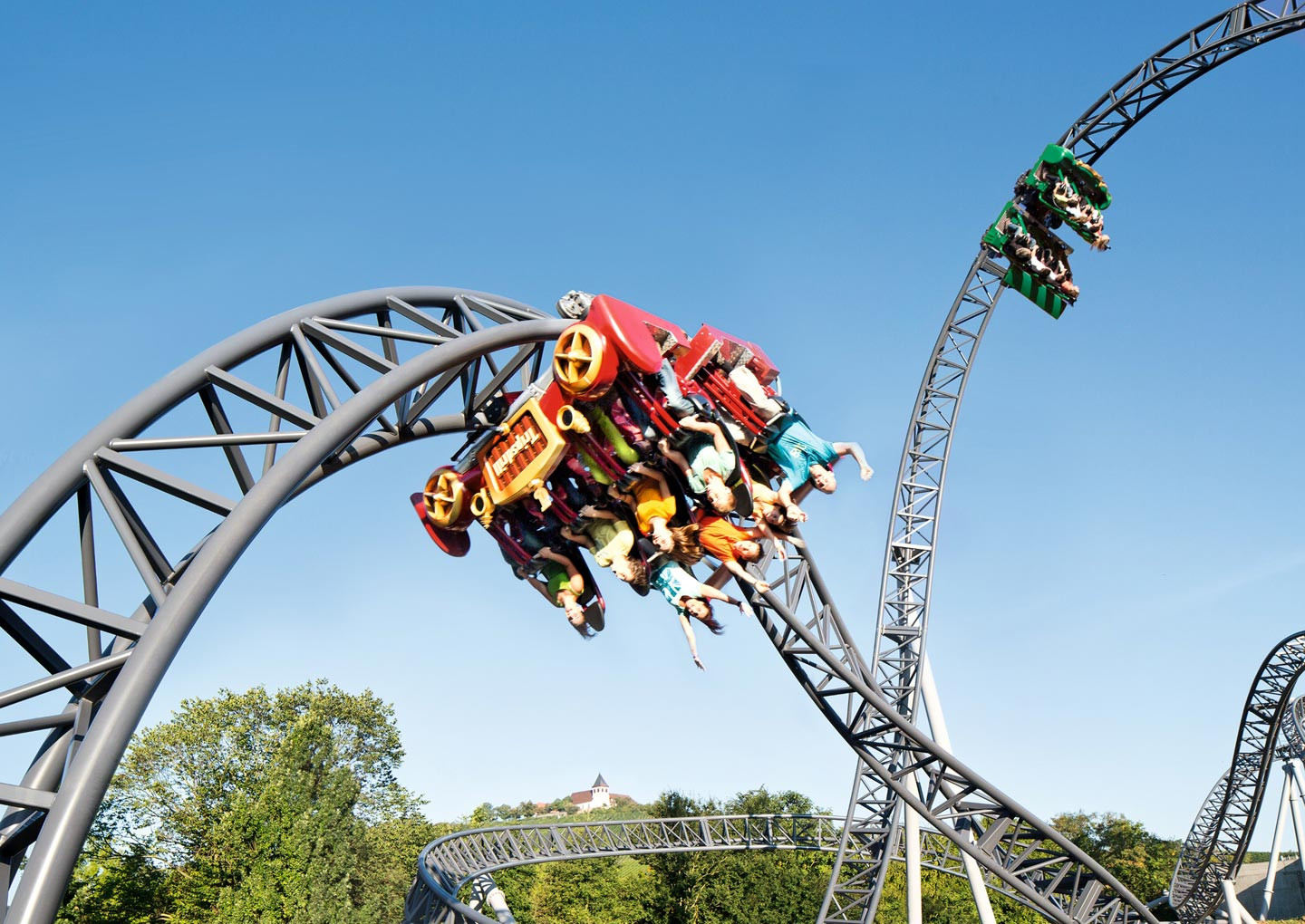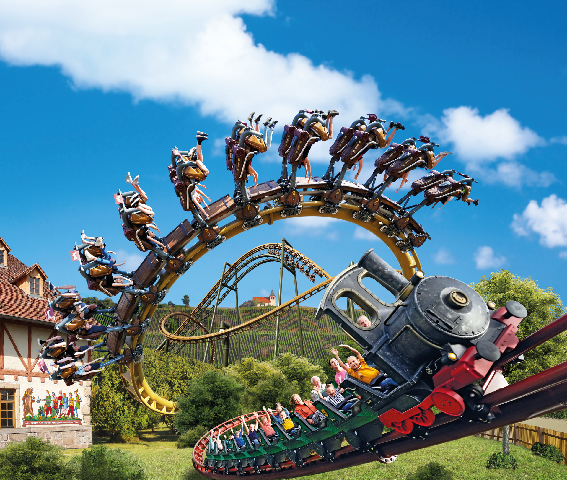 Eine Weltneuheit stellen die beiden Achterbahnen „Volldampf“ und „Hals-über-Kopf“ dar. Sie sind Teil einer einzigartigen Doppelanlage, bei der sich der Streckenverlauf beider Bahnen mehrfach kreuzt. Bei „Volldampf“ handelt es sich um eine Familien-Achterbahn, die sowohl vor- als auch rückwärtsfährt. Unvergleichlichen Fahrspaß garantiert die Hängeachterbahn „Hals-über-Kopf“. Die Züge fahren nicht auf, sondern schweben unter der Schiene – und zwar rasant, mit rund 80 km/h und gleich vier Überschlägen.