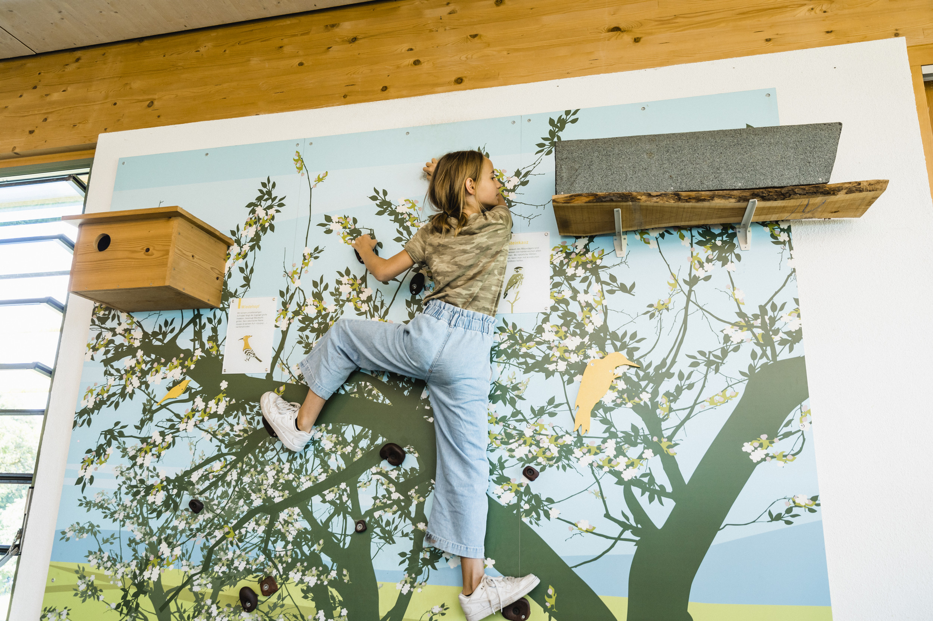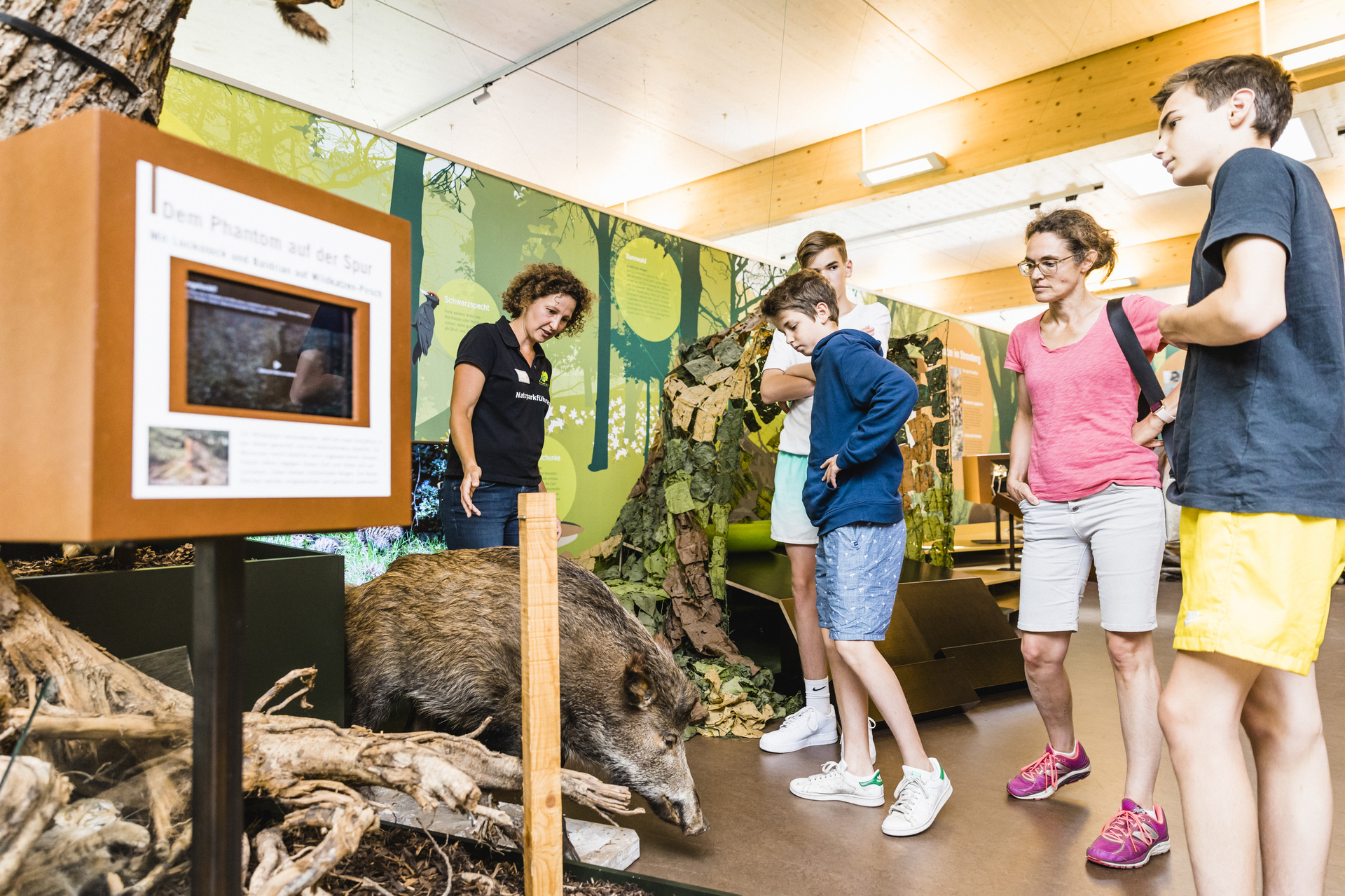 In der Dauerausstellung gibt es viele Mitmach- und Erlebnisstationen, die zum Entdecken einladen. Man kann durch Höhlen kriechen, auf einer Waldliege dösen, an einer Blumenwiese schnuppern oder die Stufen der Keuperlandschaft nachbauen. Bereichert wird die Dauerausstellung durch die integrierte WildkatzenWelt.