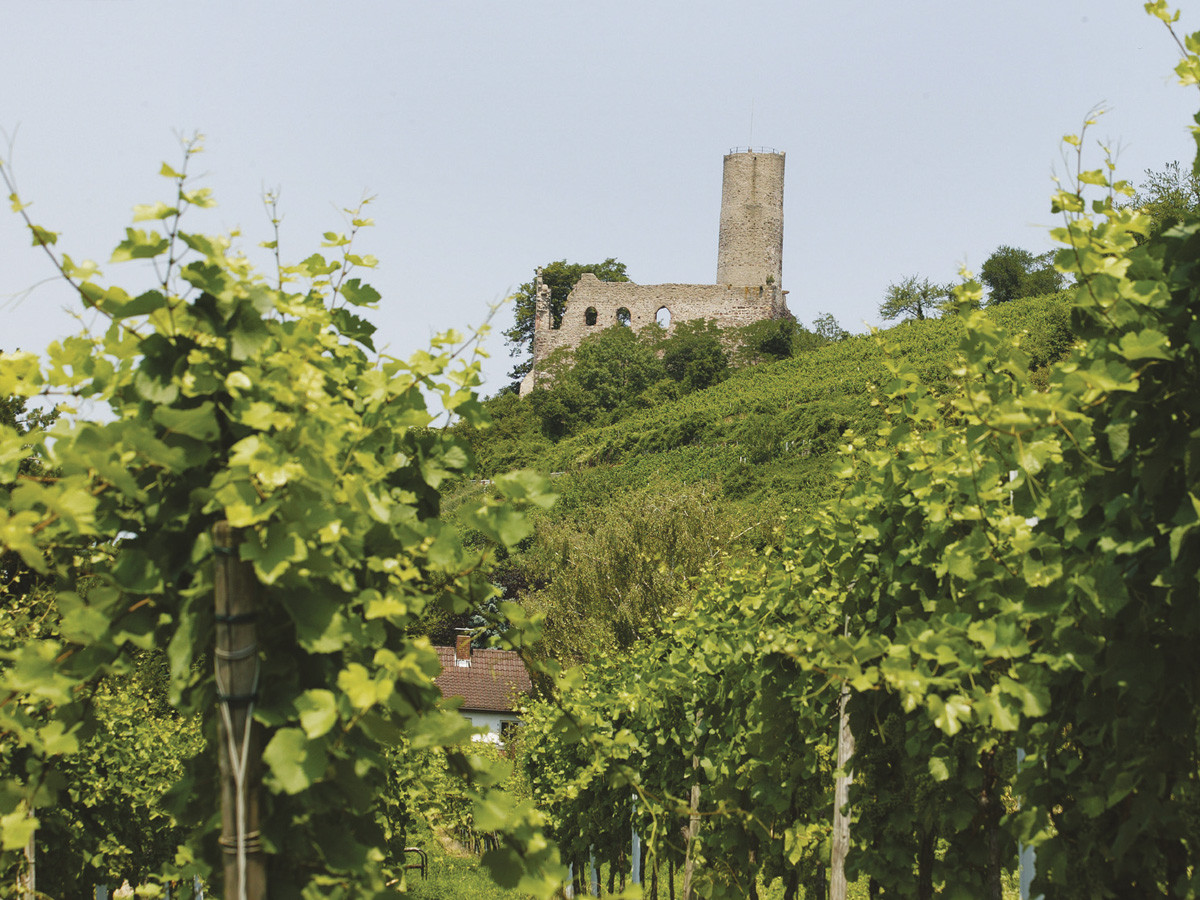 Nach einer Rast am Liederkranzdenkmal oder einem der Plätze an der Burg geht es durch die Weinberge hinab zum Etappenziel, der Straßenbahnstation Schriesheim.