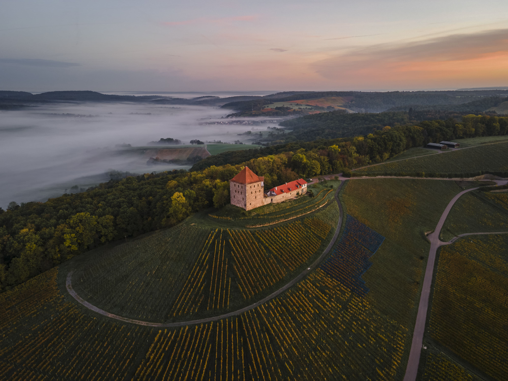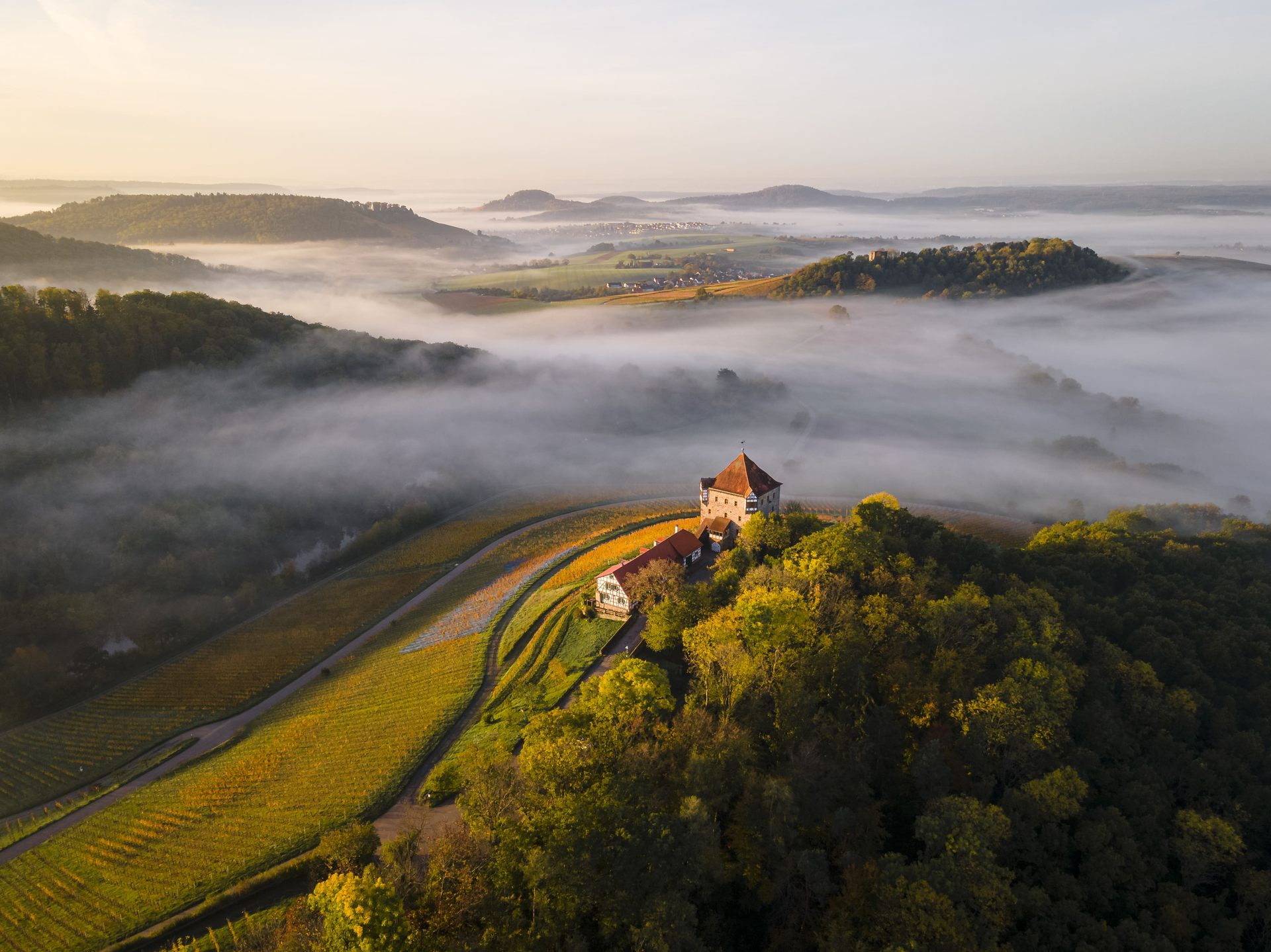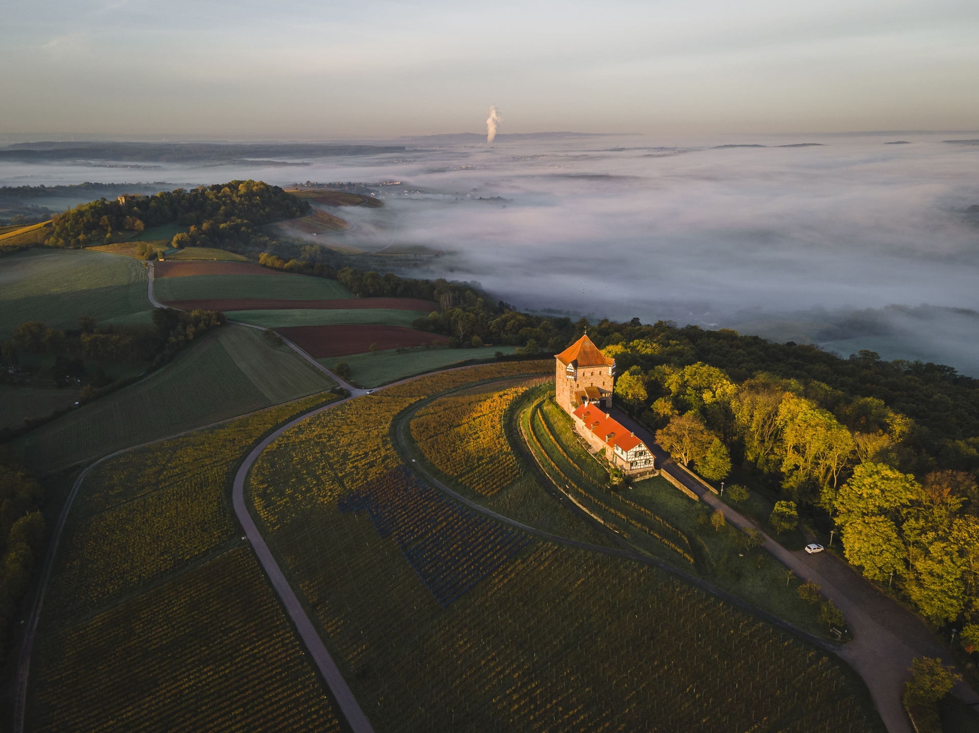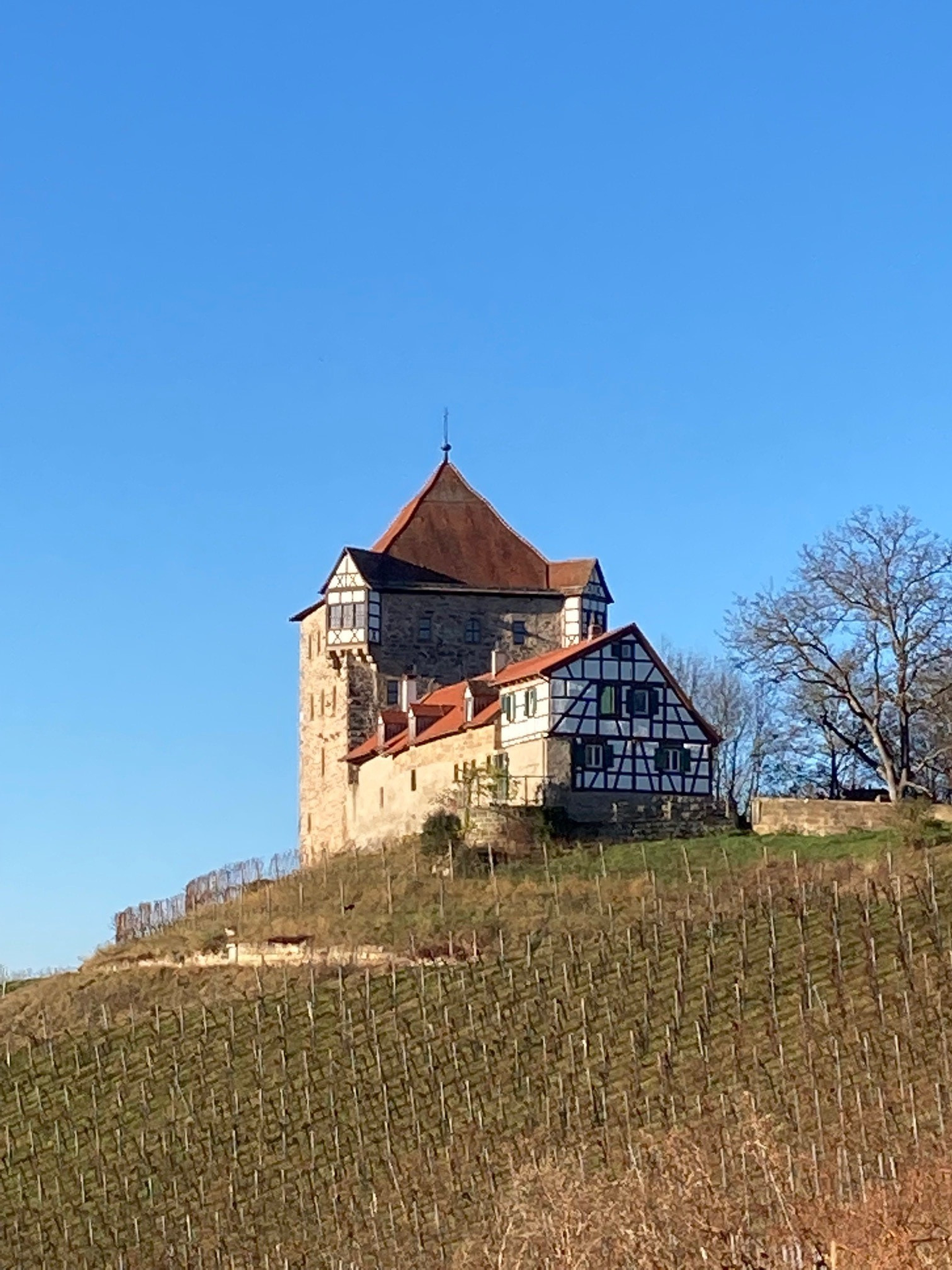Und obwohl der Turm nicht öffentlich zugänglich ist, lohnt ein Abstecher hinauf zur Burg. Vom freizugänglichen Burghof eröffnet sich ein schönes Bild über die Weinlandschaft im Naturpark Schwäbisch-Fränkischer Wald.