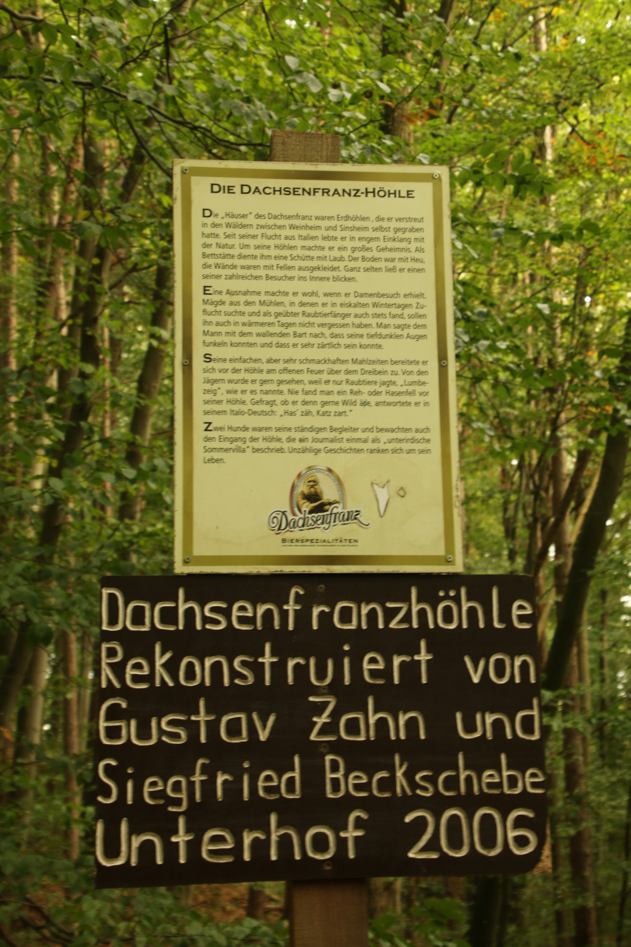 Die Dachsenfranzhöhle zwischen Dielheim und Horrenberg war einst die Wohnhöhle des 'Dachsenfranz' Francesco Regali, der vor über hundert Jahren in den Wäldern des Odenwaldes und im Kraichgau hauste. Nachdem er 1886 seinen Vorgesetzten im Militärdienst erstach, floh er nach Süddeutschland und lebte fortan als Eremit. In seine Wohnhöhle durften keine Gäste, der Eingang wurde von seinen zwei Hunden bewacht. Die Höhle wurde rekonstruiert und ist heute für Besucher frei zugänglich.