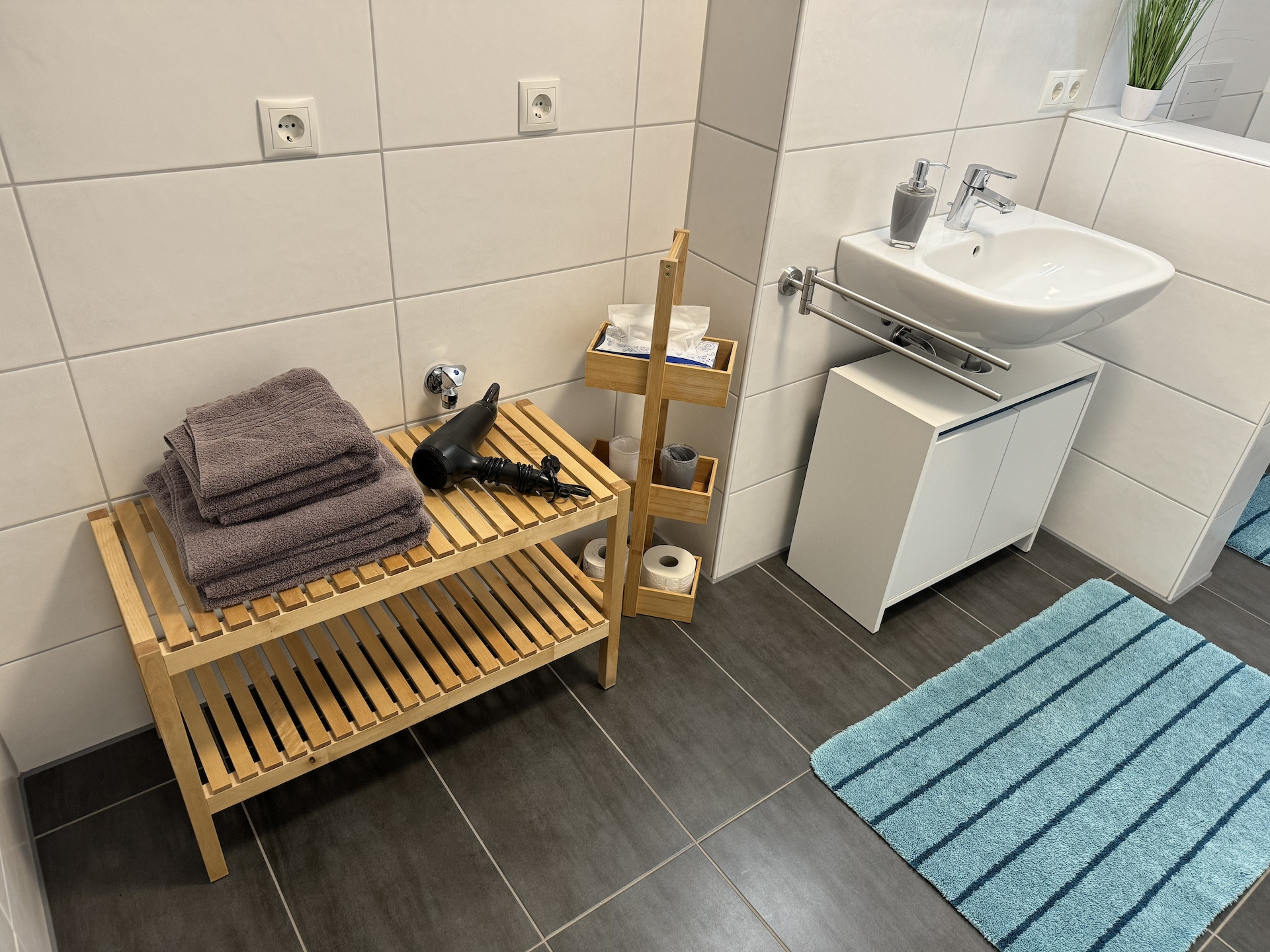 Das Bad ist mit Badewanne und Fußbodenheizung ausgestattet.