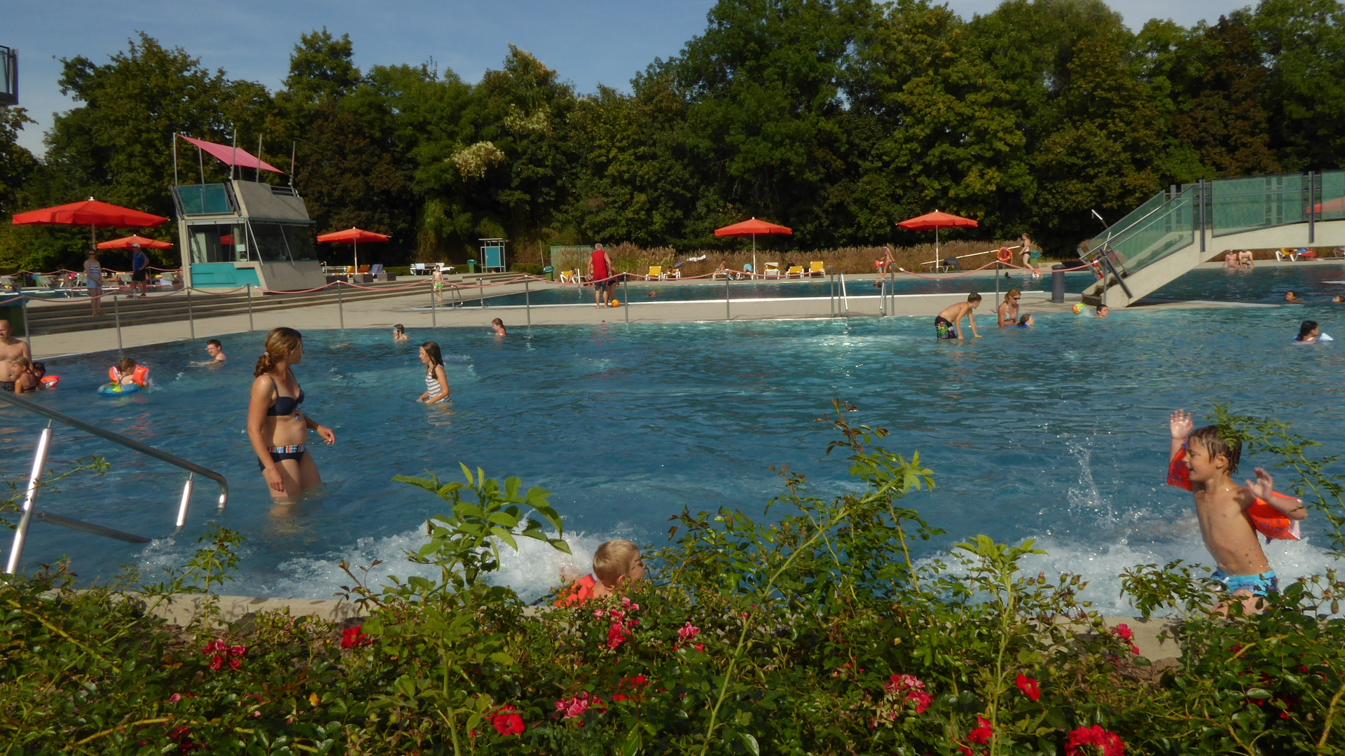 Das Freibad in Wiesloch bietet Badespaß für die ganze Familie und für jeden Anspruch. Das Olympiabecken (21x50m) bietet mit 8 Bahnen und Startblöcken wunderbare Voraussetzungen, um ungestört seine Bahnen ziehen zu können. Der zweiteilige Nichtschwimmerbereich teilt sich in 5 Schwimmbahnen und ein Attraktionsbecken mit Durchschwimmkanal, Massagesitzplätzen und Sprudelliegen. Ein extra Wasserspielbereich für Kinder mit Planschbecken und Rutsche, Schiffchenkanal sowie Rundbecken und Stauwerk bietet genug Abwechslung für die Kleinsten.