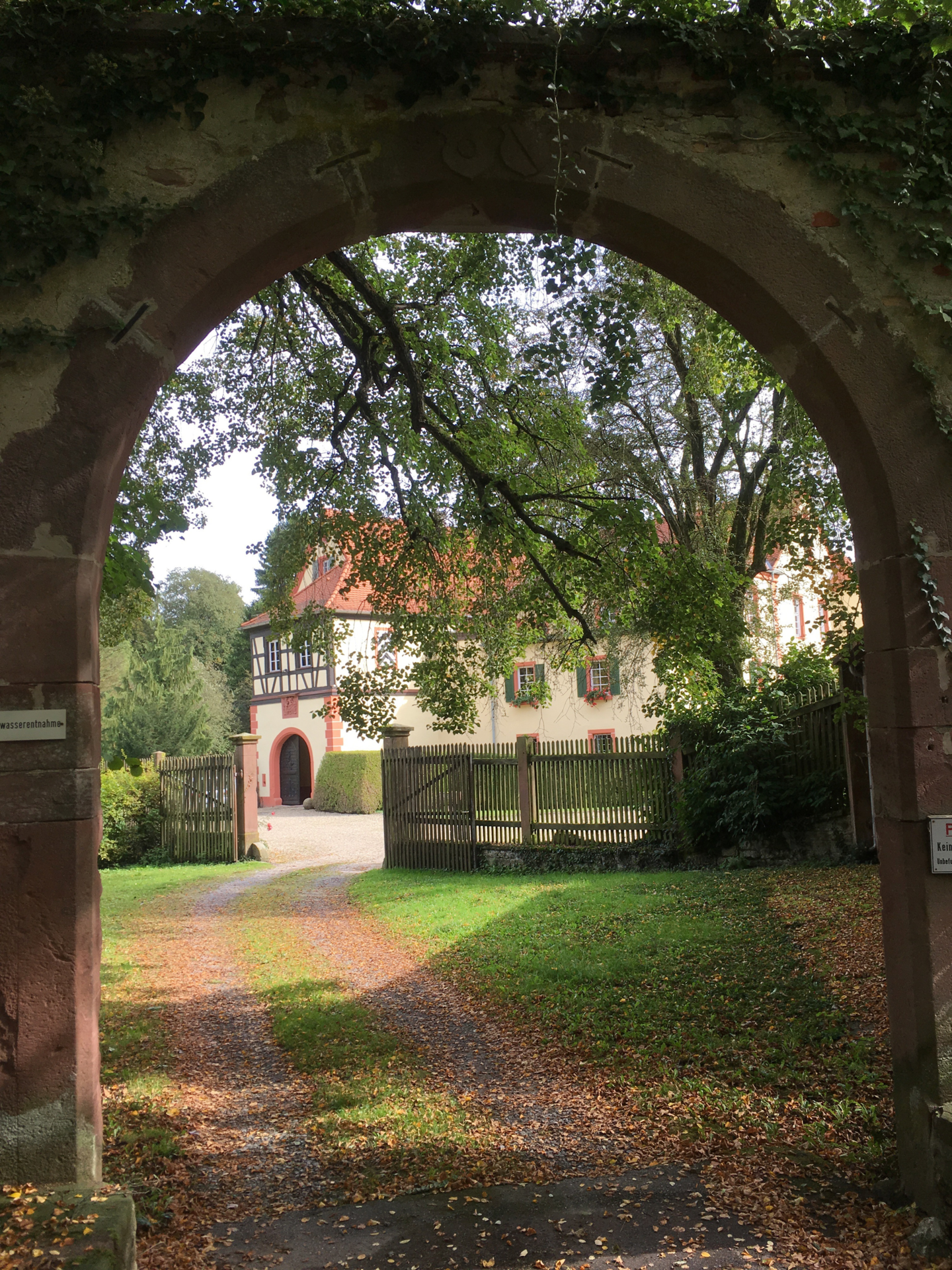 Die nächste Station heißt Wiesenbach, es wird auch Tor vom kleinen Odenwald zum Kraichgau genannt. Durch das Dorf fließt der Biddersbach dem wir bis nach Langenzell folgen. Wie in einer grünen Oase liegt Schloß Langenzell verborgen in seinem urwüchsigen Park und den Ländereien ringsherum. 1880 wurde es von Fürst und Fürstin von Löwenstein-Wertheim-Freudenberg erbaut. In diesem architektonischen Meisterstück des Historismus erlebt man die Pracht verschiedener Stilepochen mit einander vereint. Das Schloß Langenzell wurde erst 2010 von der Fürsrtenfamilie verkauft. Heute können die Räumlichkeiten für private Veranstaltungen angemietet werden. Das Schloß ist leider nicht öffentlich zugänglich.