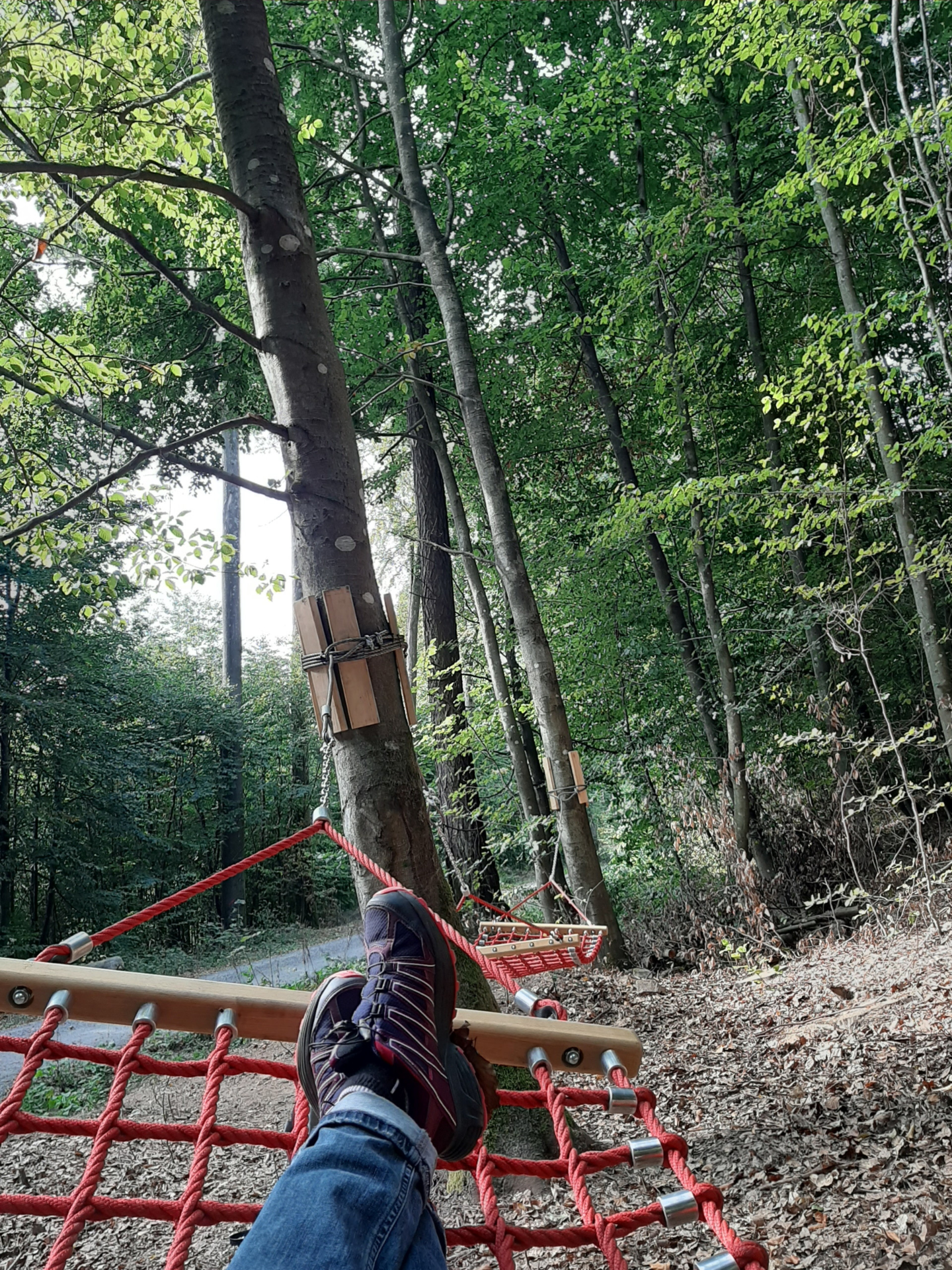 Vom Wanderparkplatz Sinnenpfad aus führt der gut ausgebaute, stufenlose Weg, der auch gut mit Kinderwagen zu bewältigen ist, von Neckargemünd in den Ortsteil Waldhilsbach. Die idyllische Lage in einem Tälchen lädt zum Rasten ein, ob am Wegesrand auf der Bank oder mit gastronomischen Angeboten im Ort.