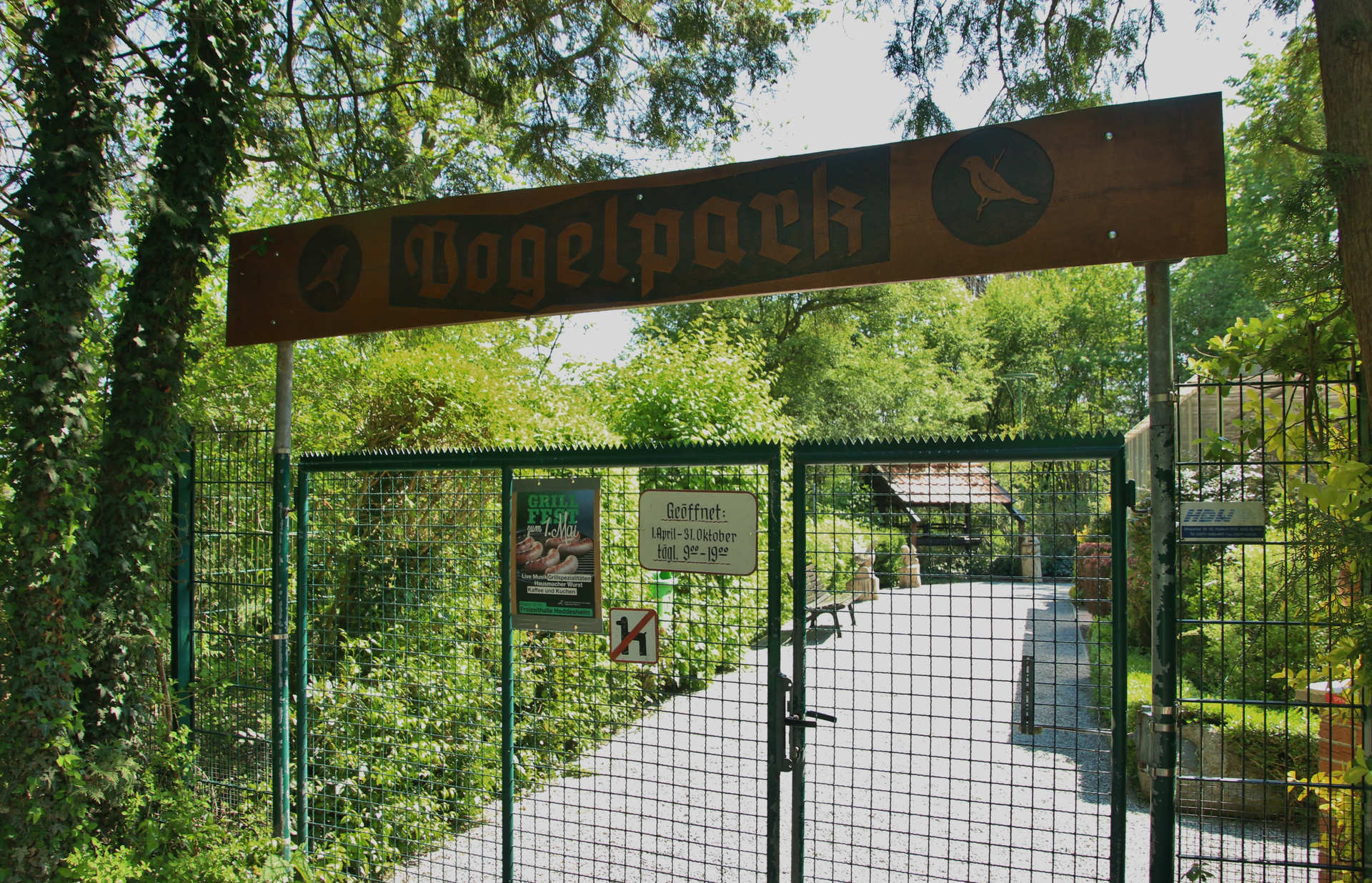 Der kleine Vogelpark liegt malerisch am Heddesheimer Badesee, nördlich von Heddesheim. In Volieren sind Fasane, Sittisch und exotische Singvögel zu entdecken. Eine große Freiflug-Voliere mit Ententeich komplettiert den Park.